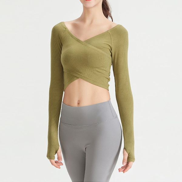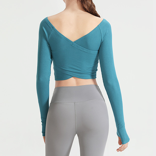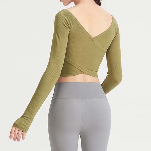 The fabric is soft and stretchy, making this yoga wear suitable for any occasion.