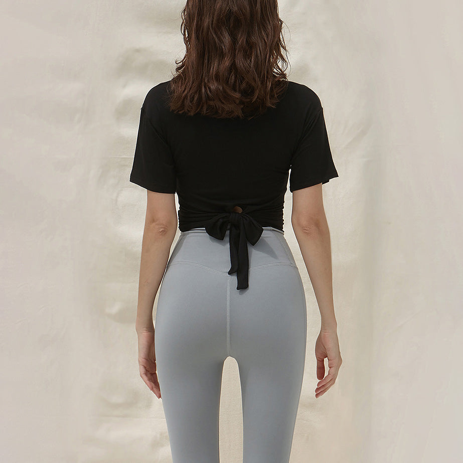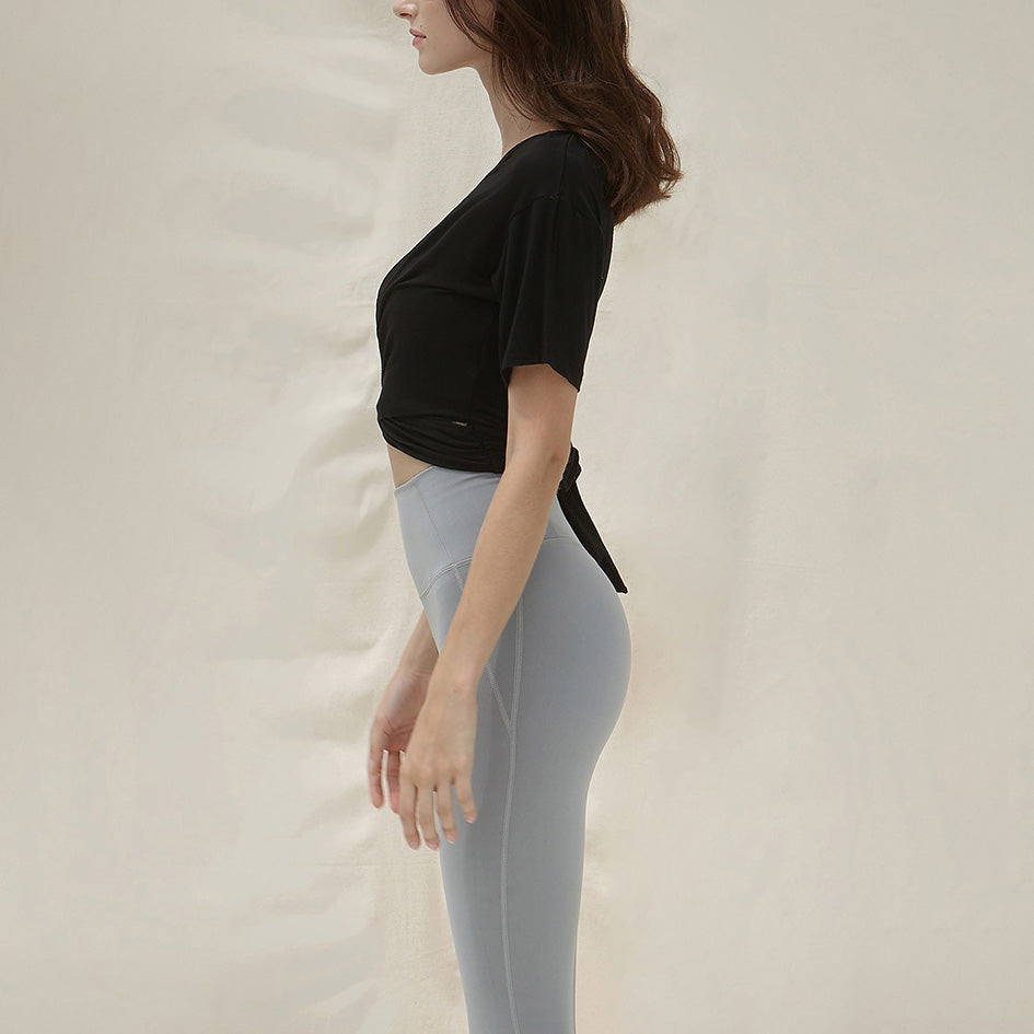 A popular top with a cross design and bag ribbon, giving it a feminine and soft silhouette.