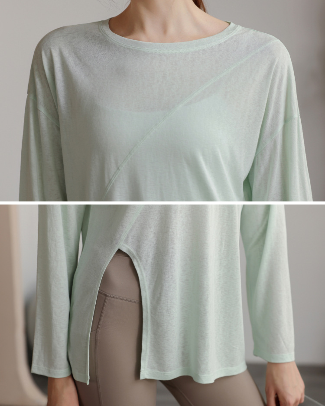 ハーフシアーサイドスリットヨガロングスリーブ 3820