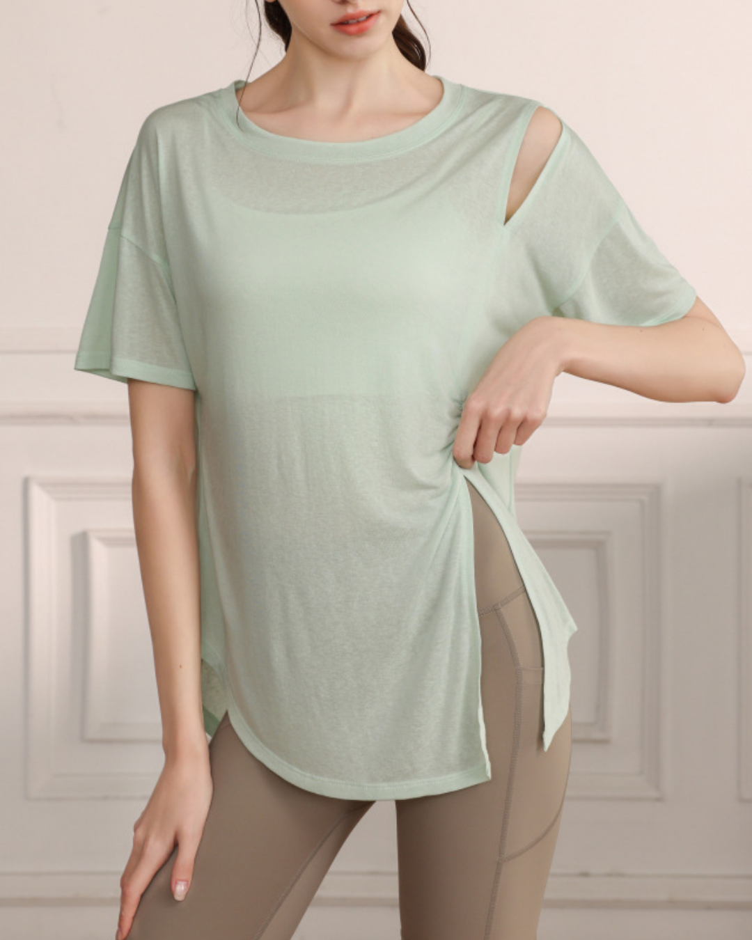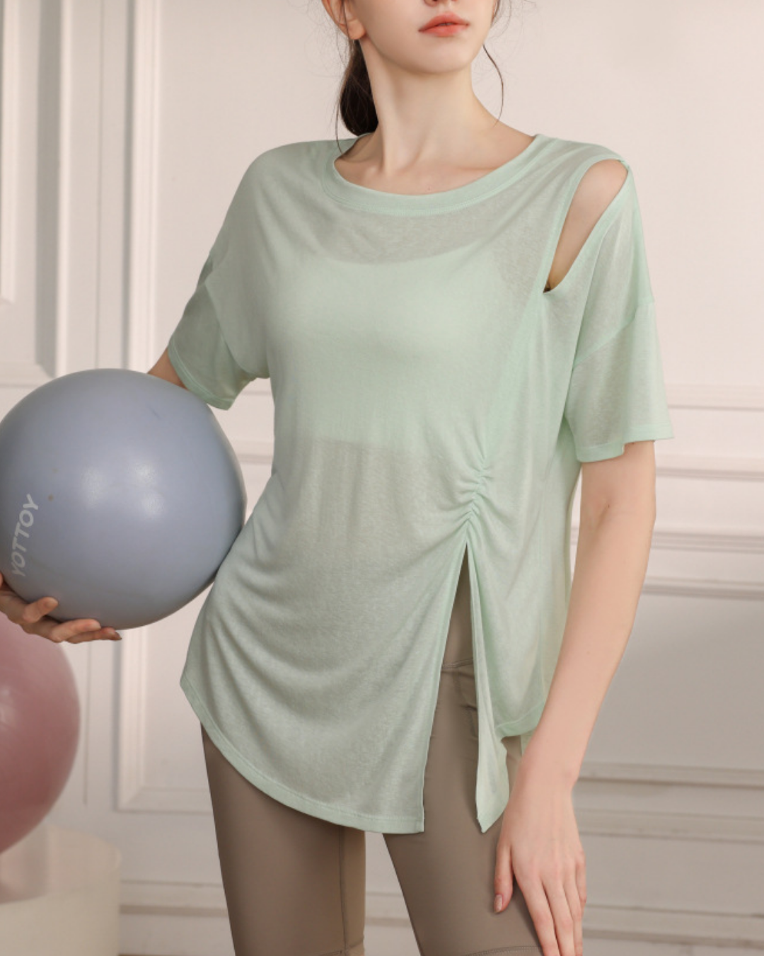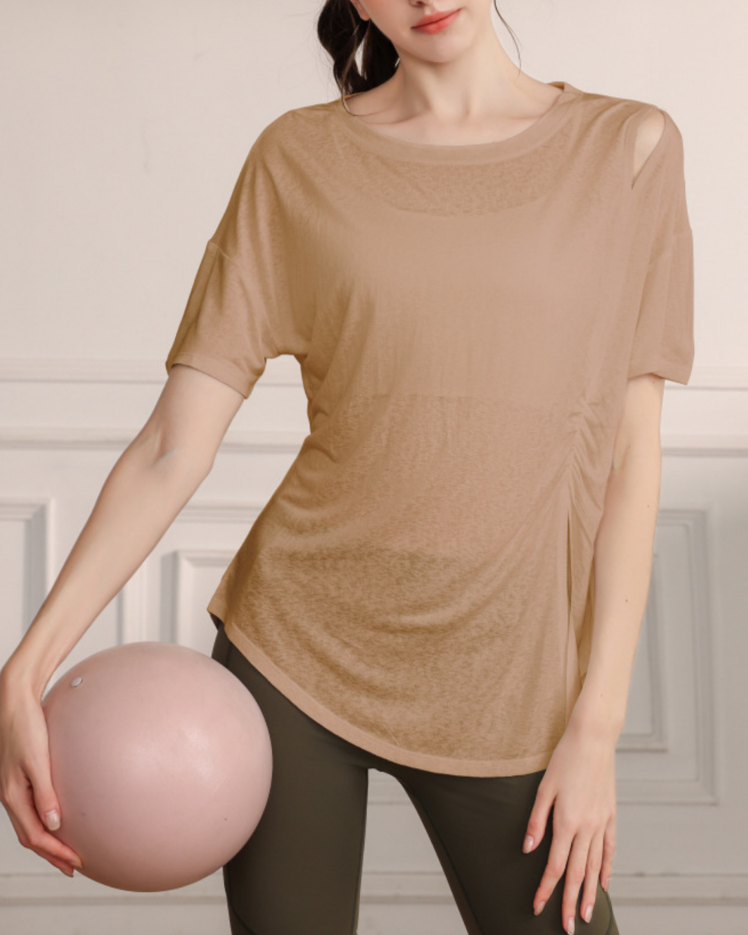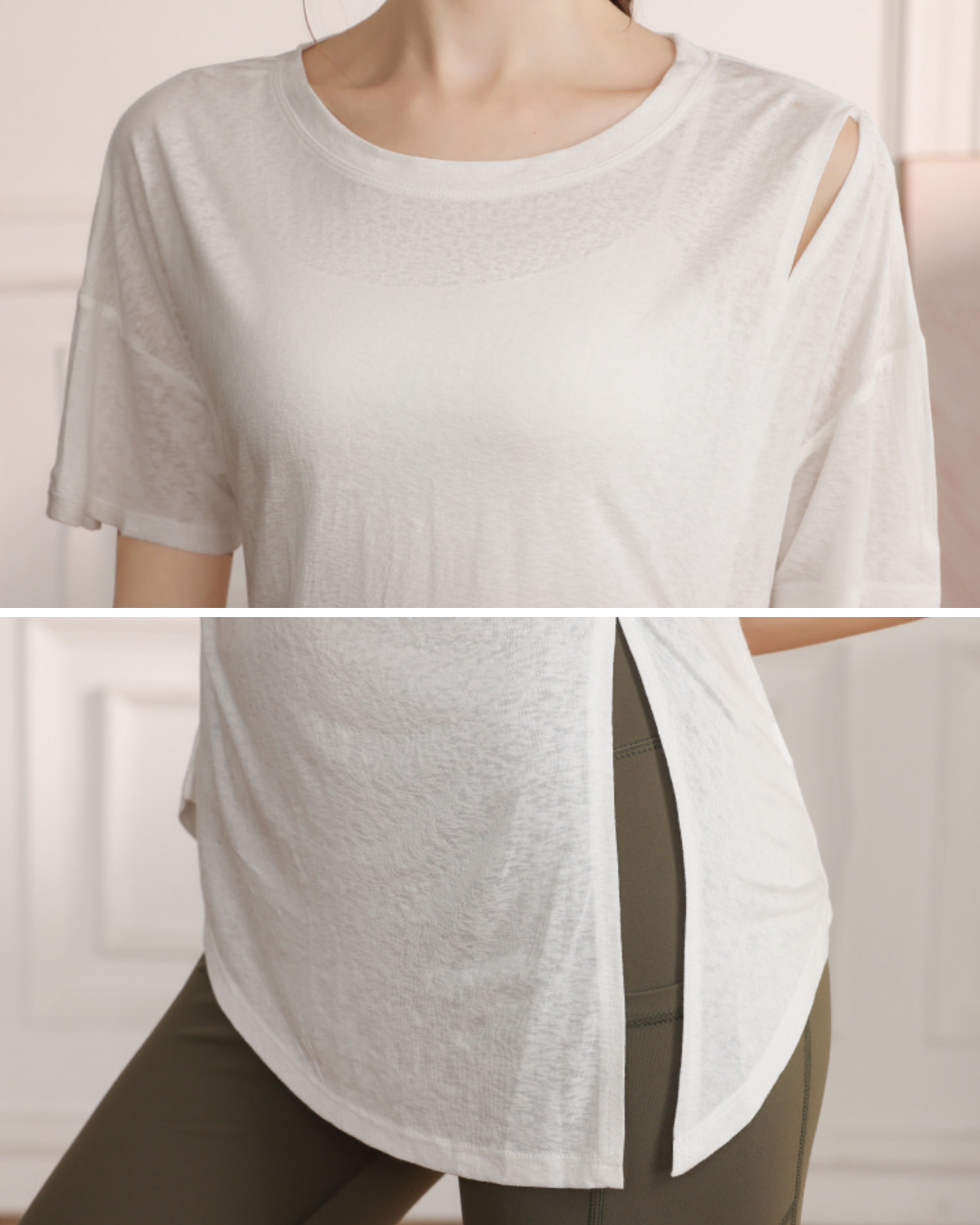 くすみハーフシアーショルダーカットアウトヨガT 3821