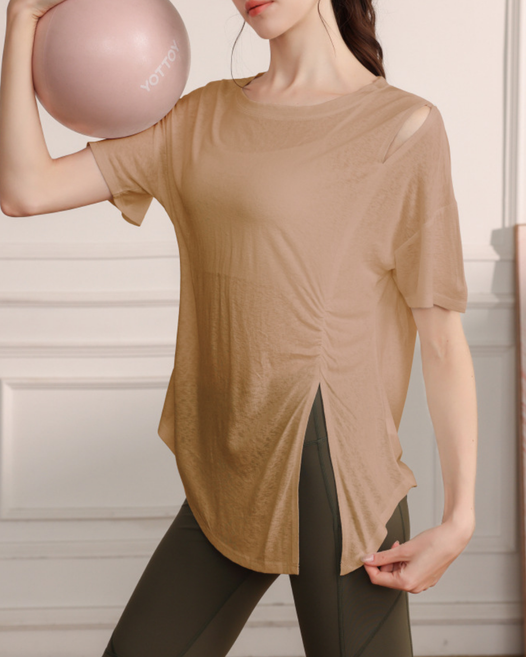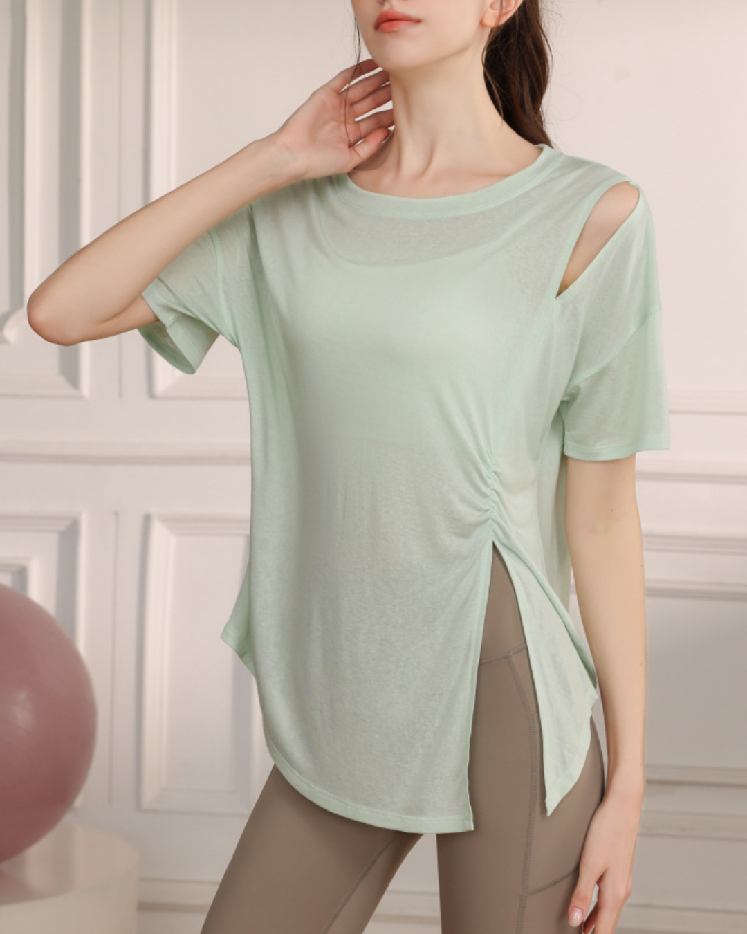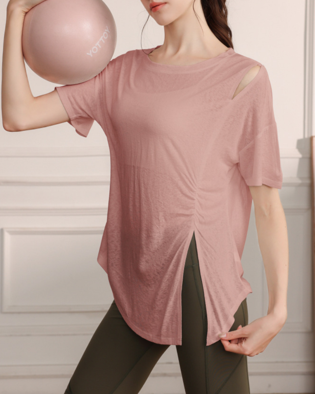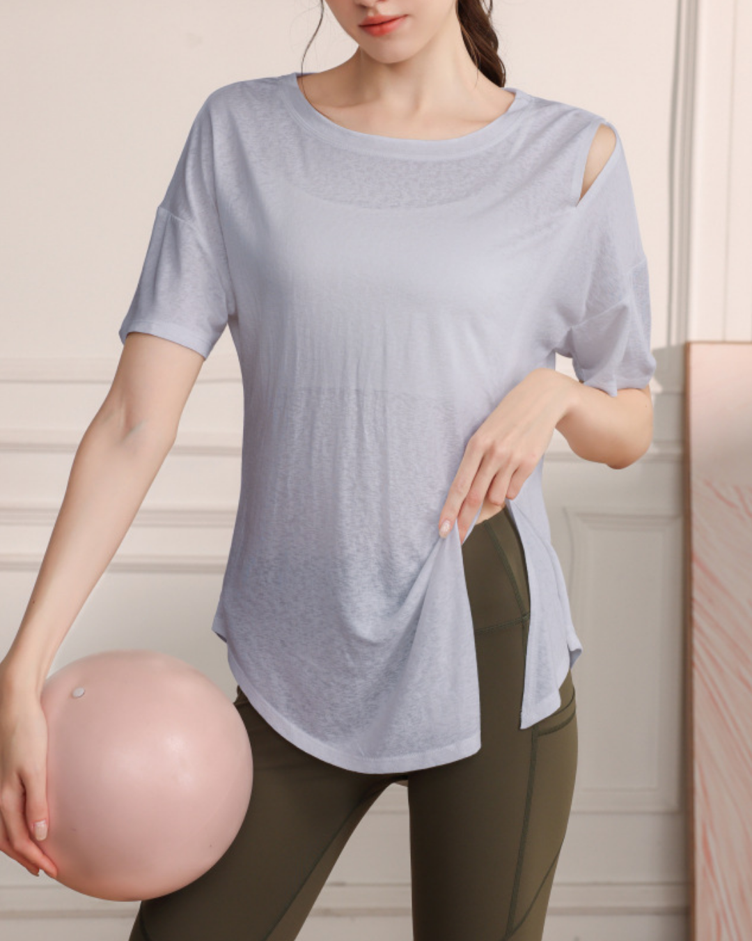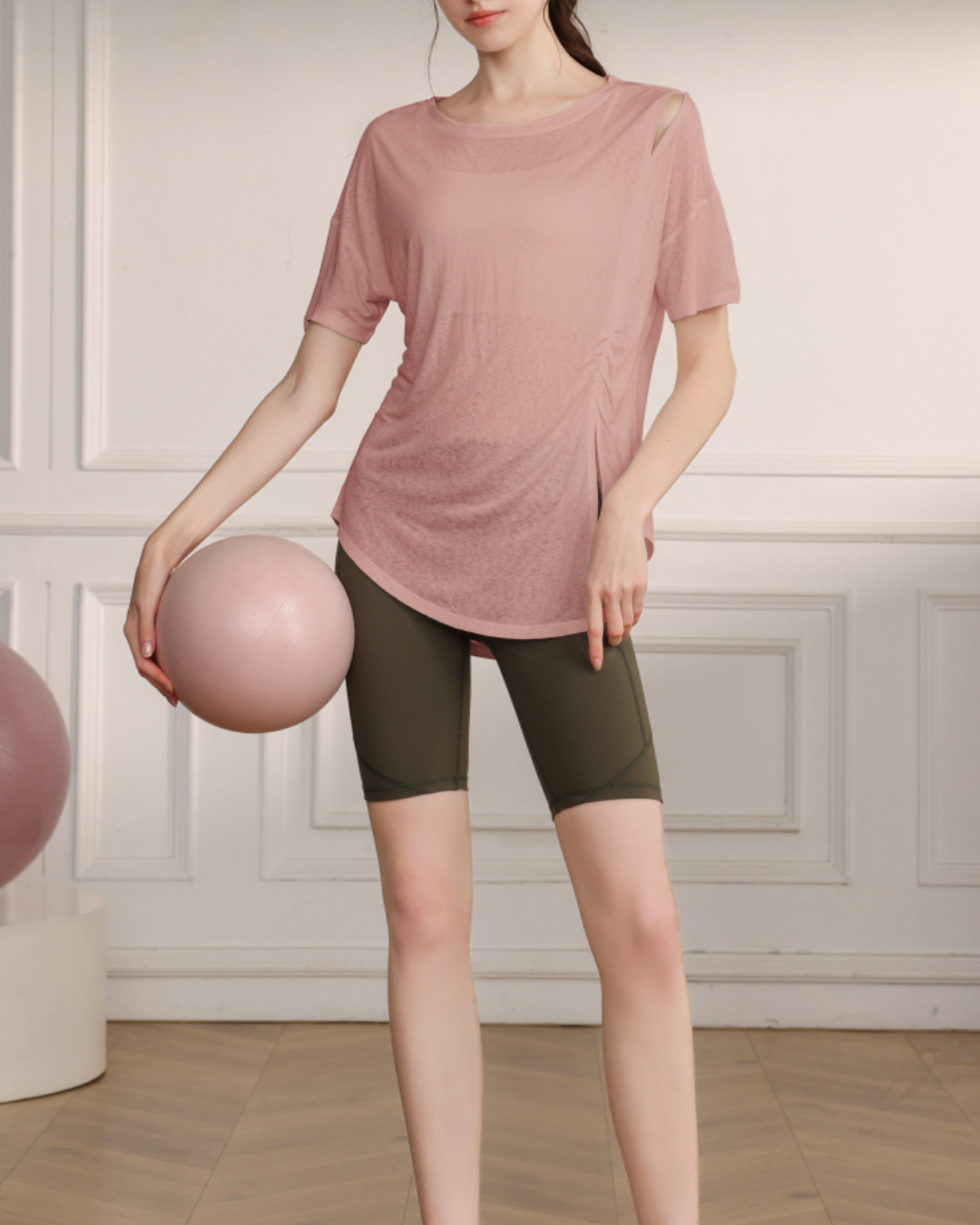 くすみハーフシアーショルダーカットアウトヨガT 3821