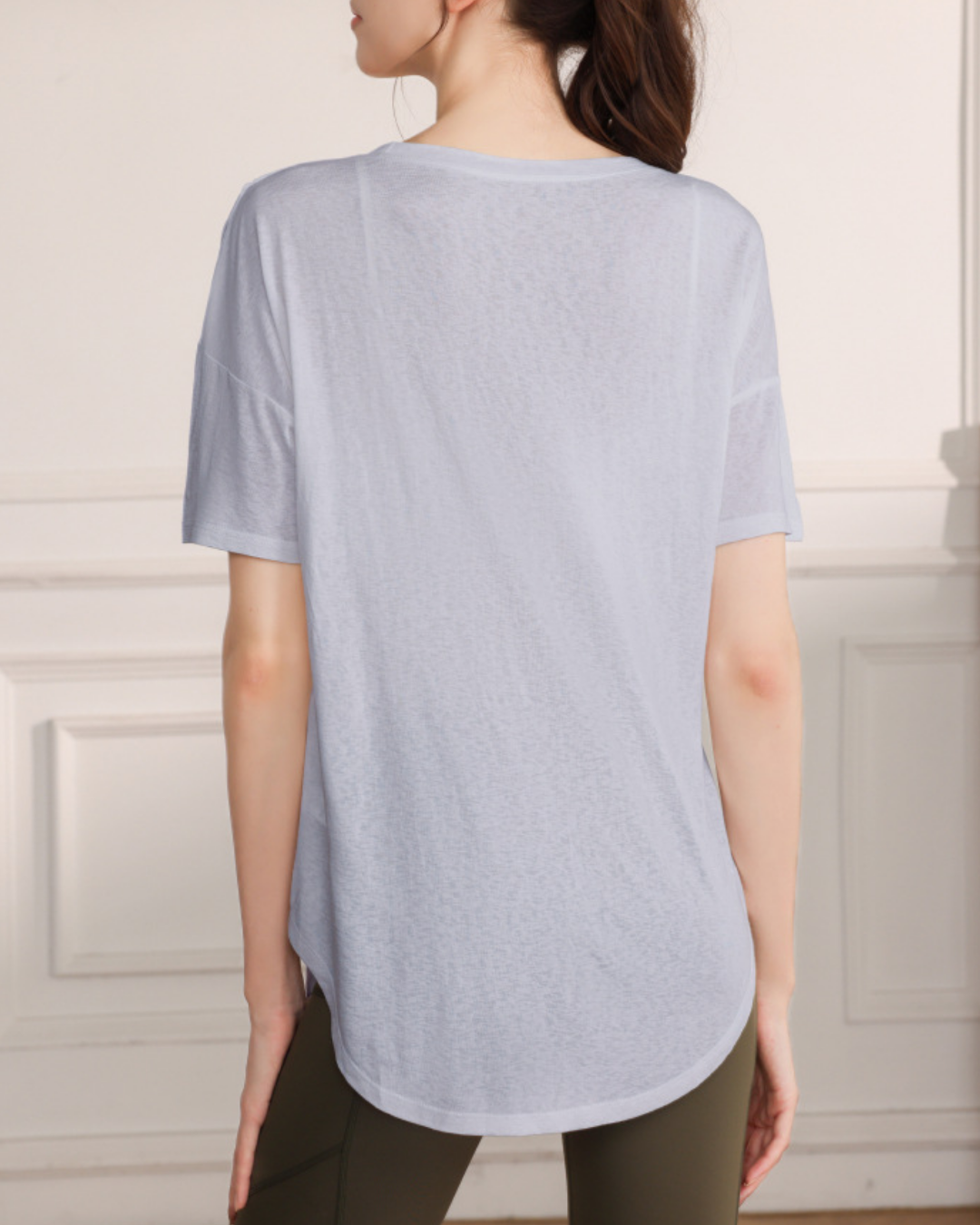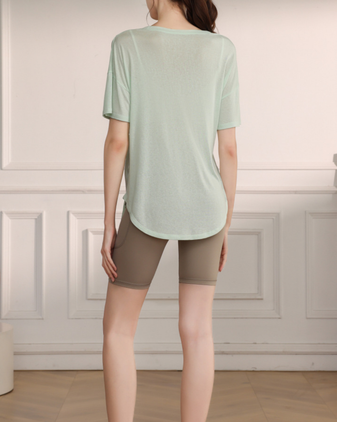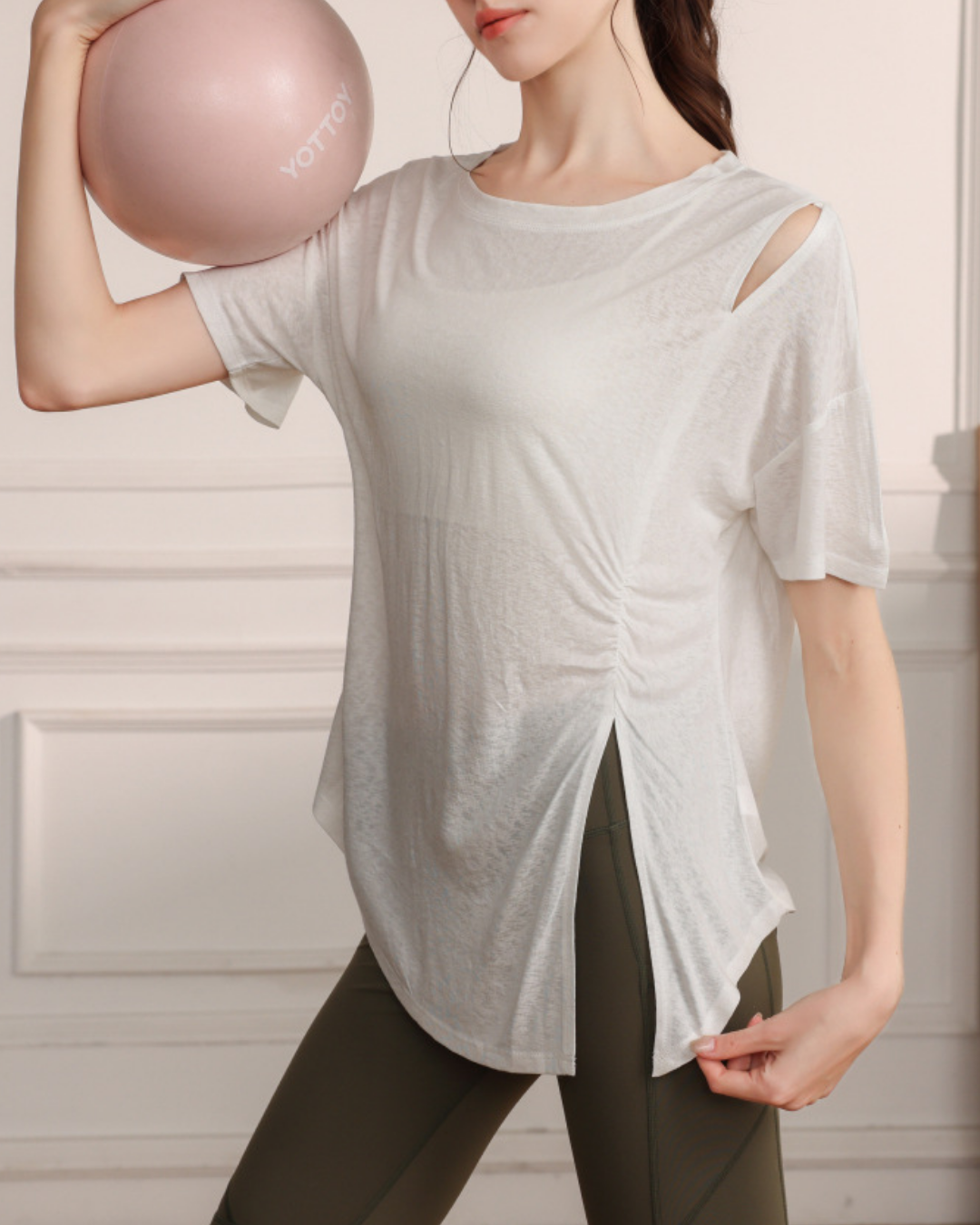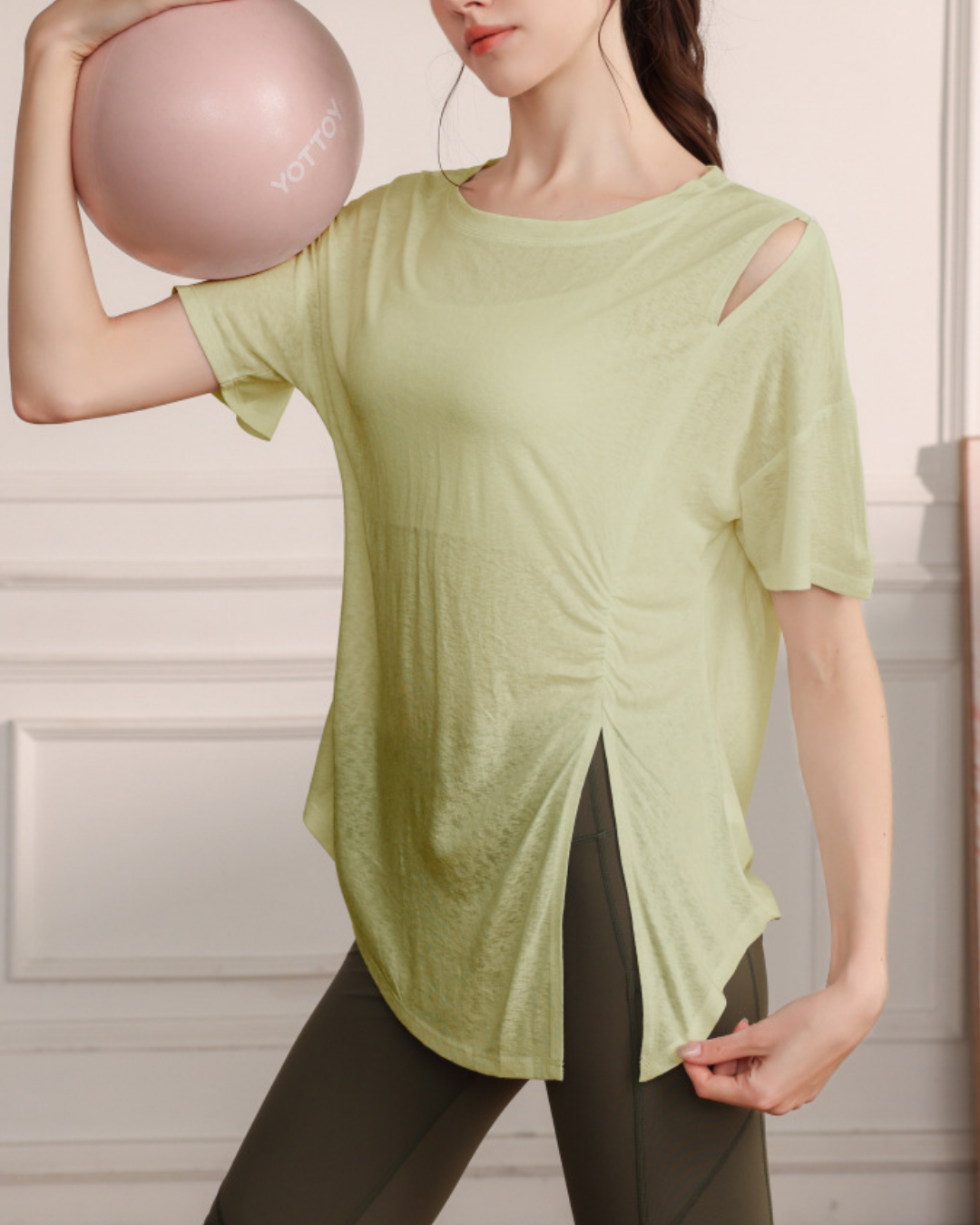 くすみハーフシアーショルダーカットアウトヨガT 3821