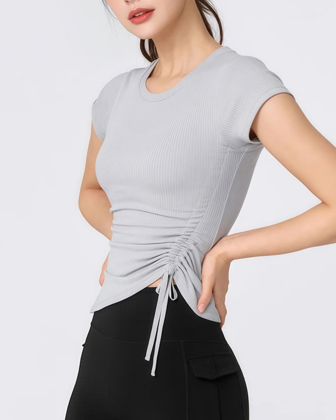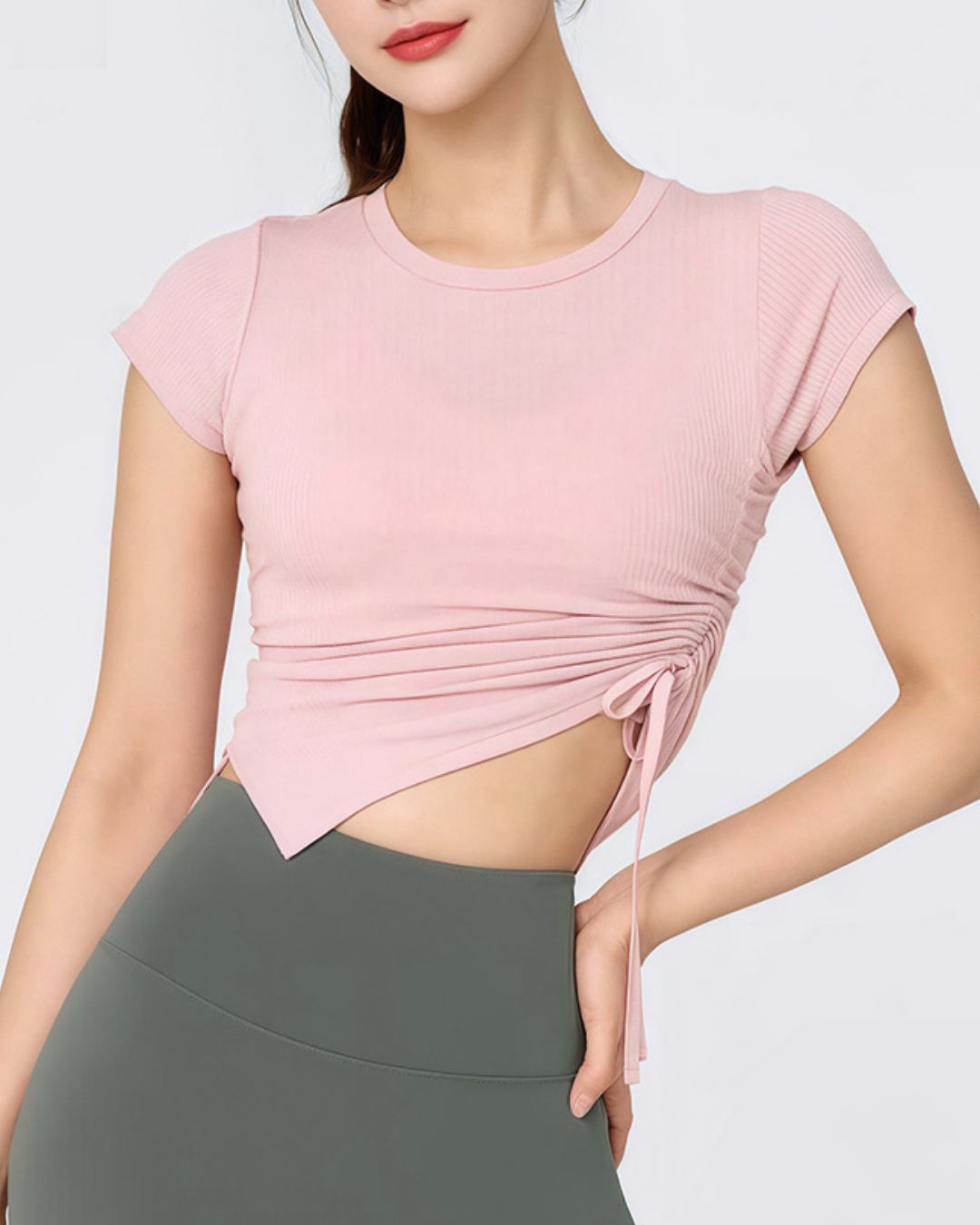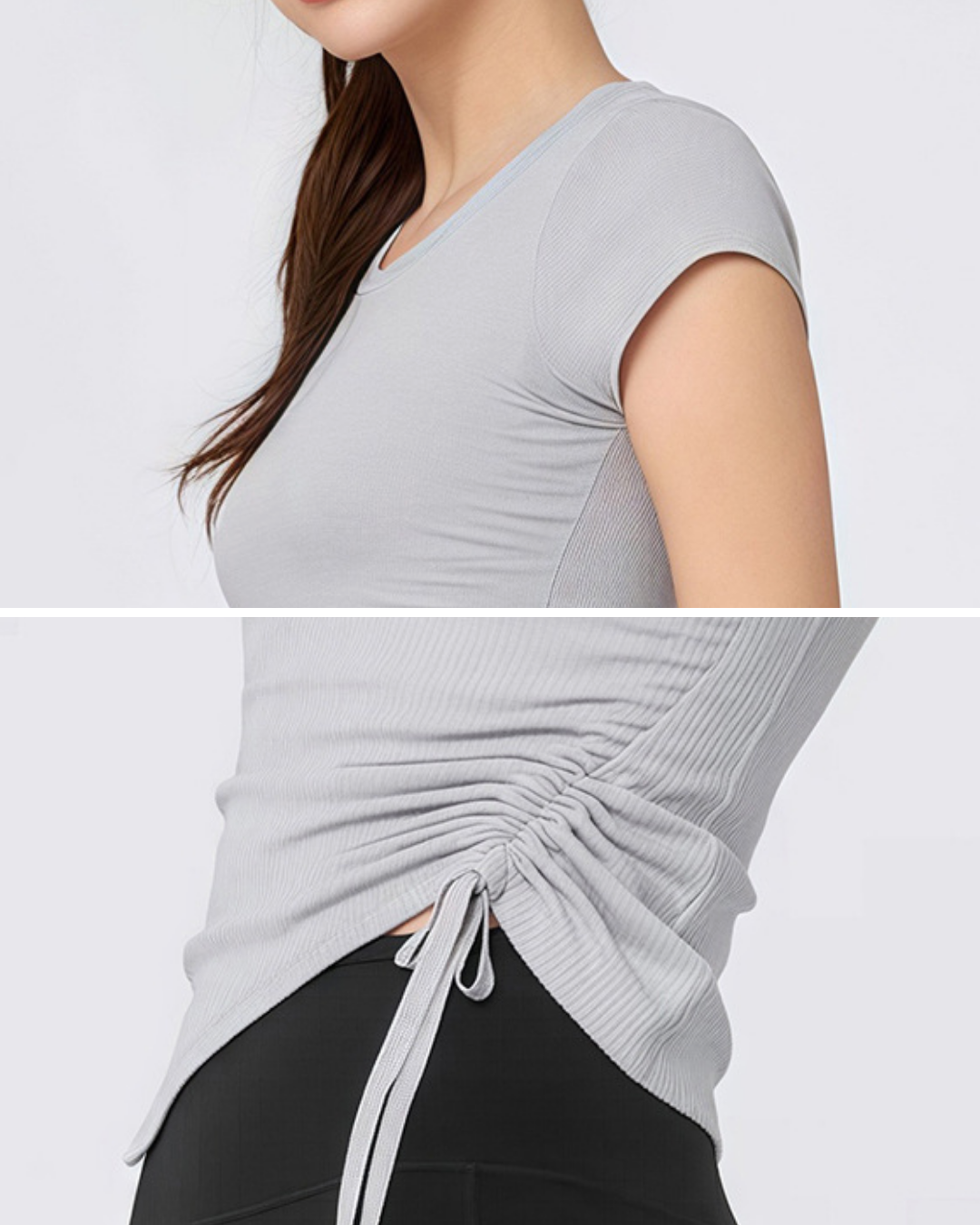 アシンメトリーサイドギャザーリブヨガカットソー 3857