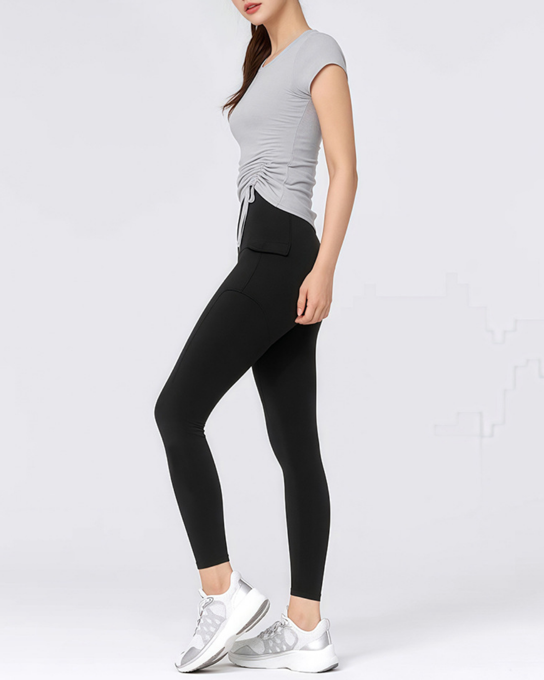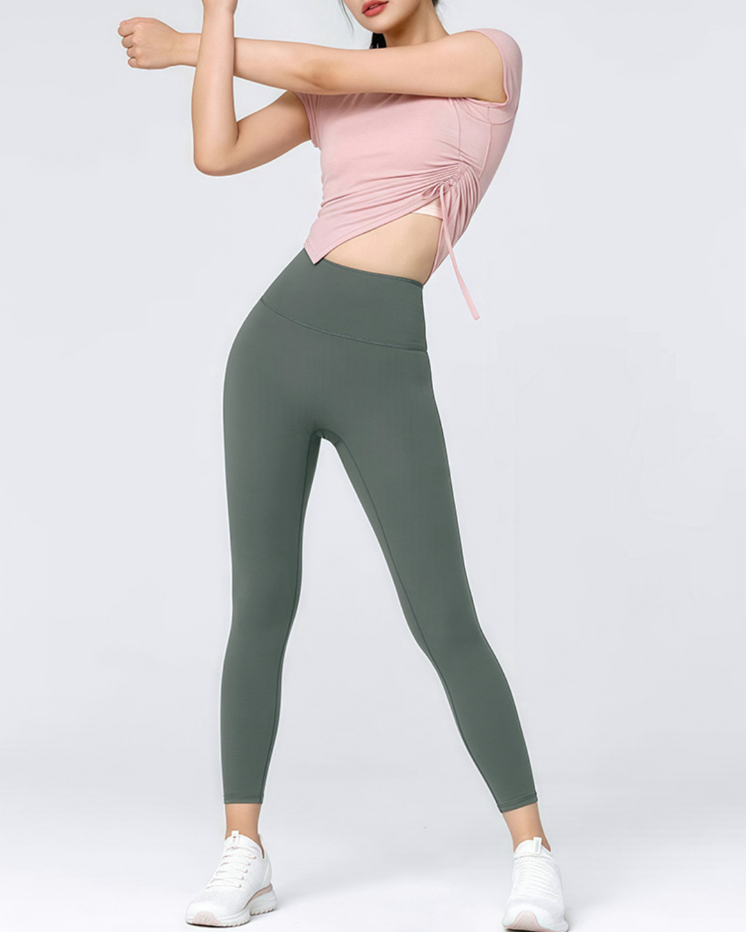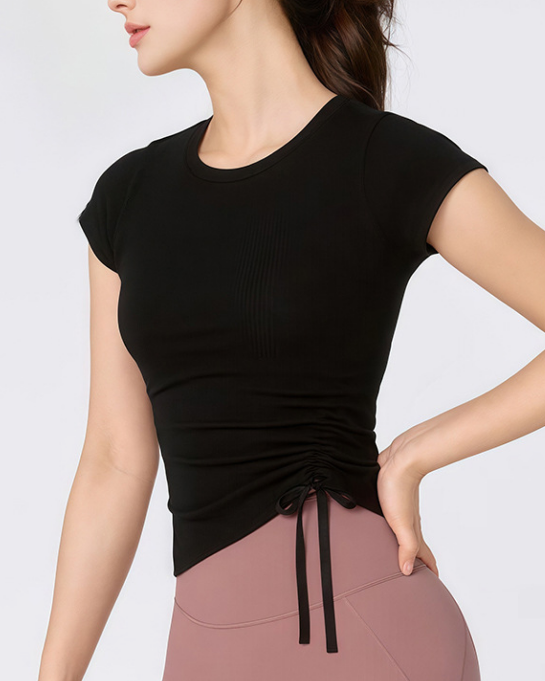 アシンメトリーサイドギャザーリブヨガカットソー 3857