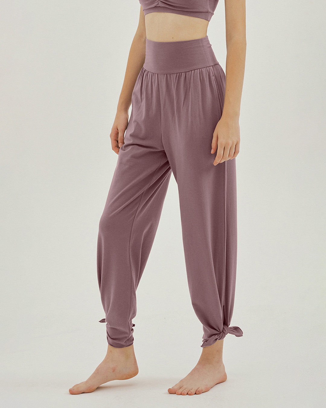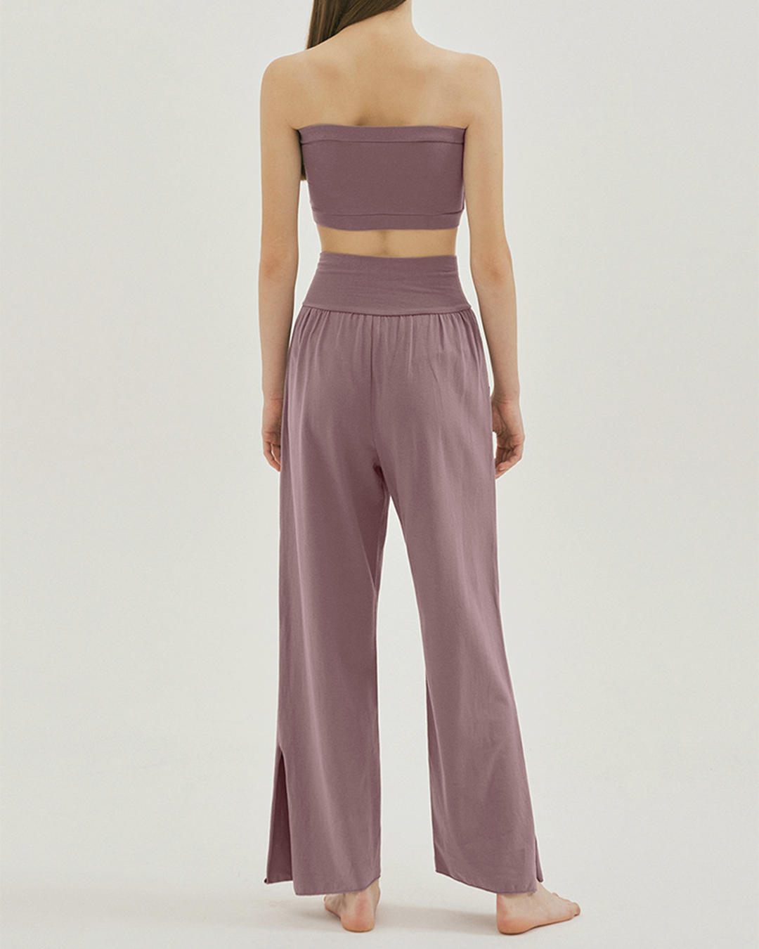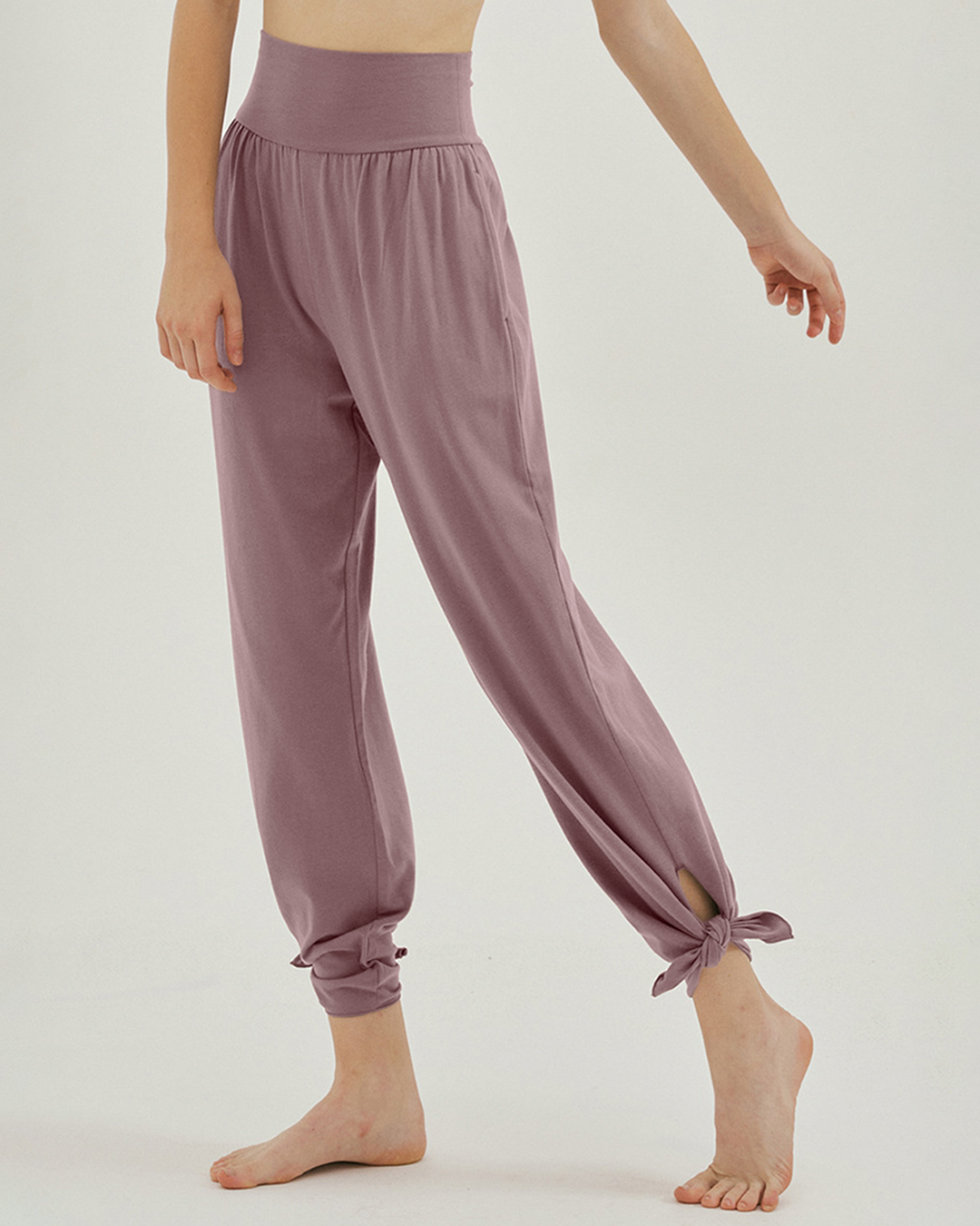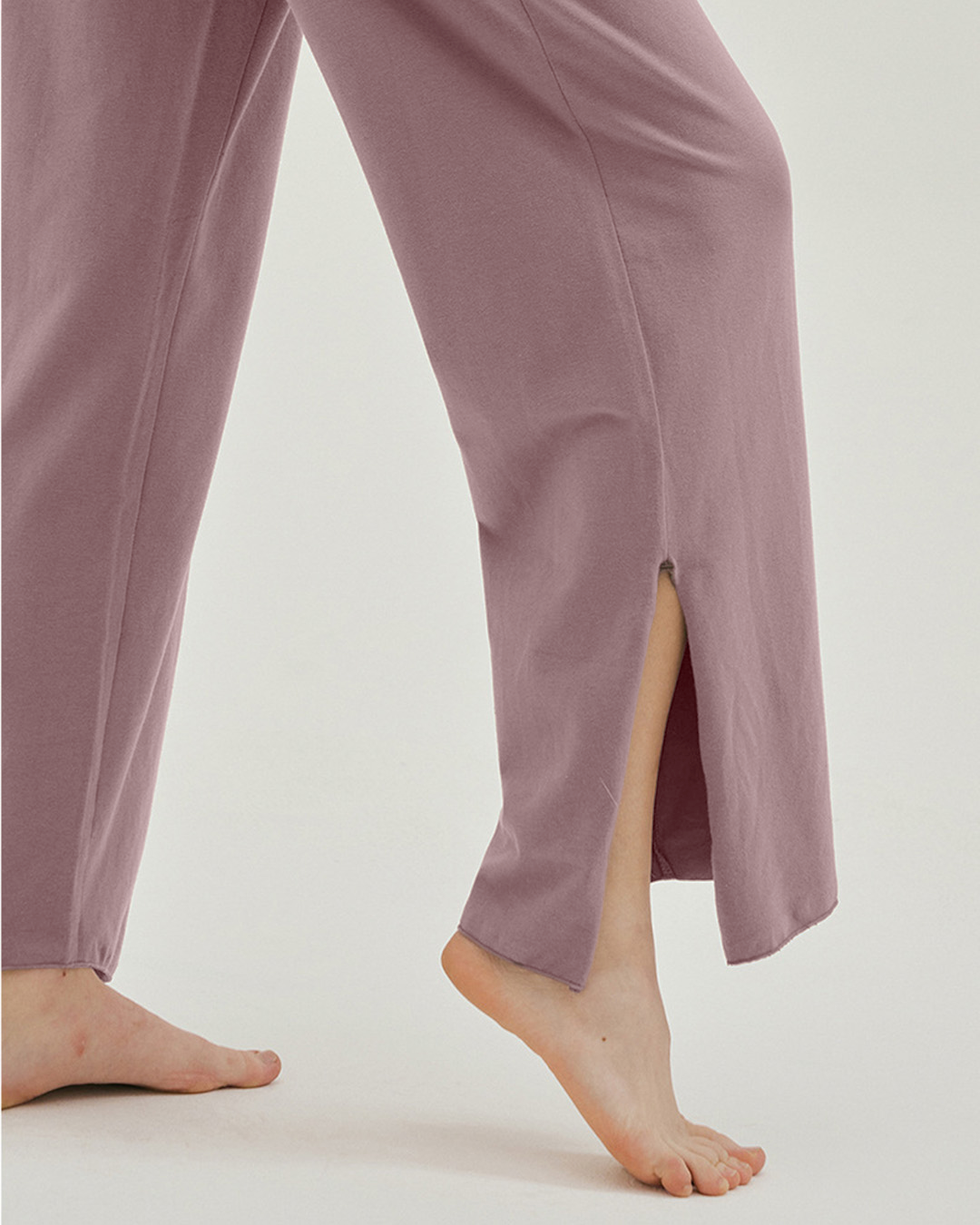裾のスリットが印象的なヨガパンツ。ハイウエスト仕様でお腹まわりを引き締め、全体のラインも美しく整う。スリット部分を結ぶと足首がすっきり見え、軽やかな動きを演出します。滑らかな肌ざわりで着心地もやさしい一枚です。