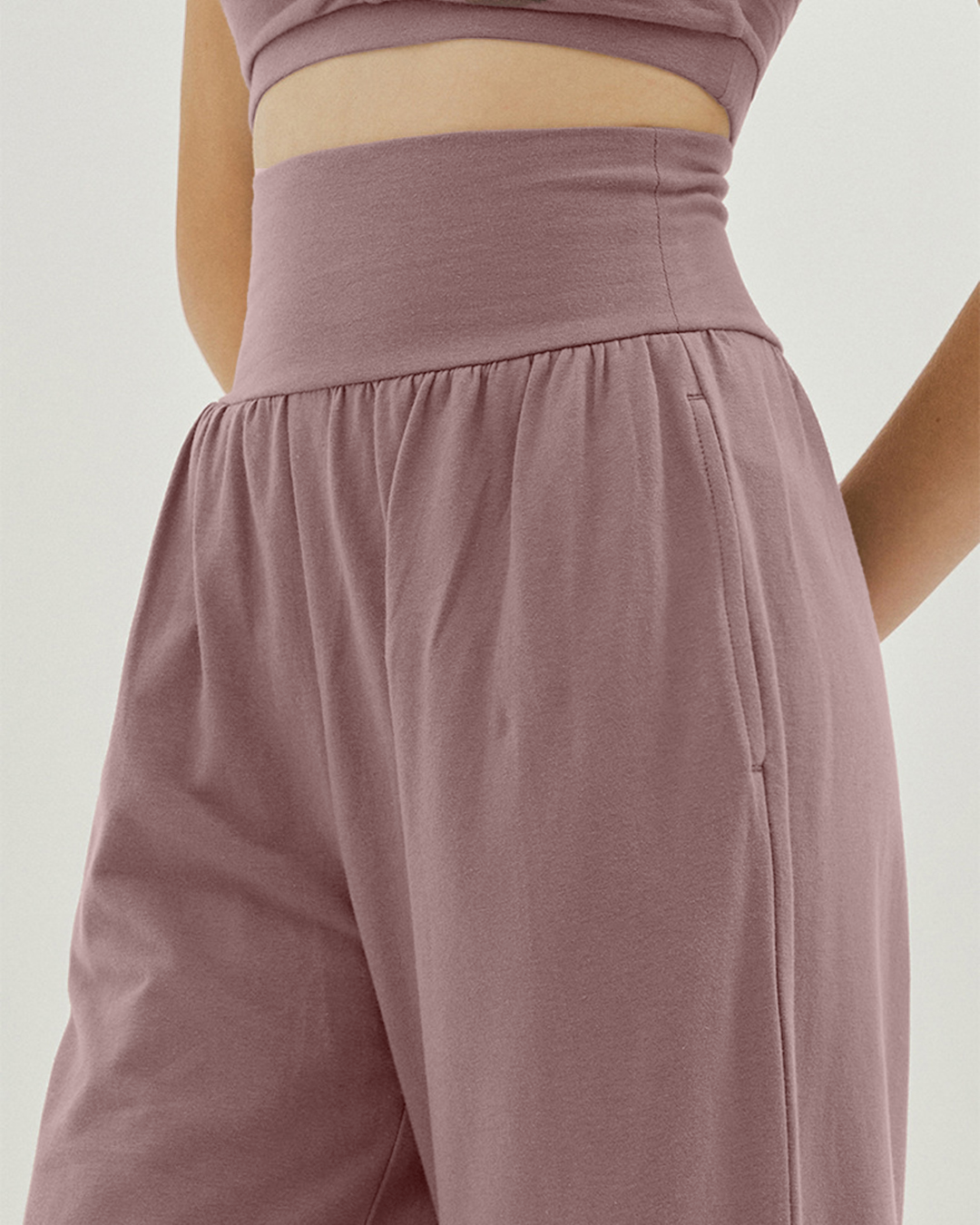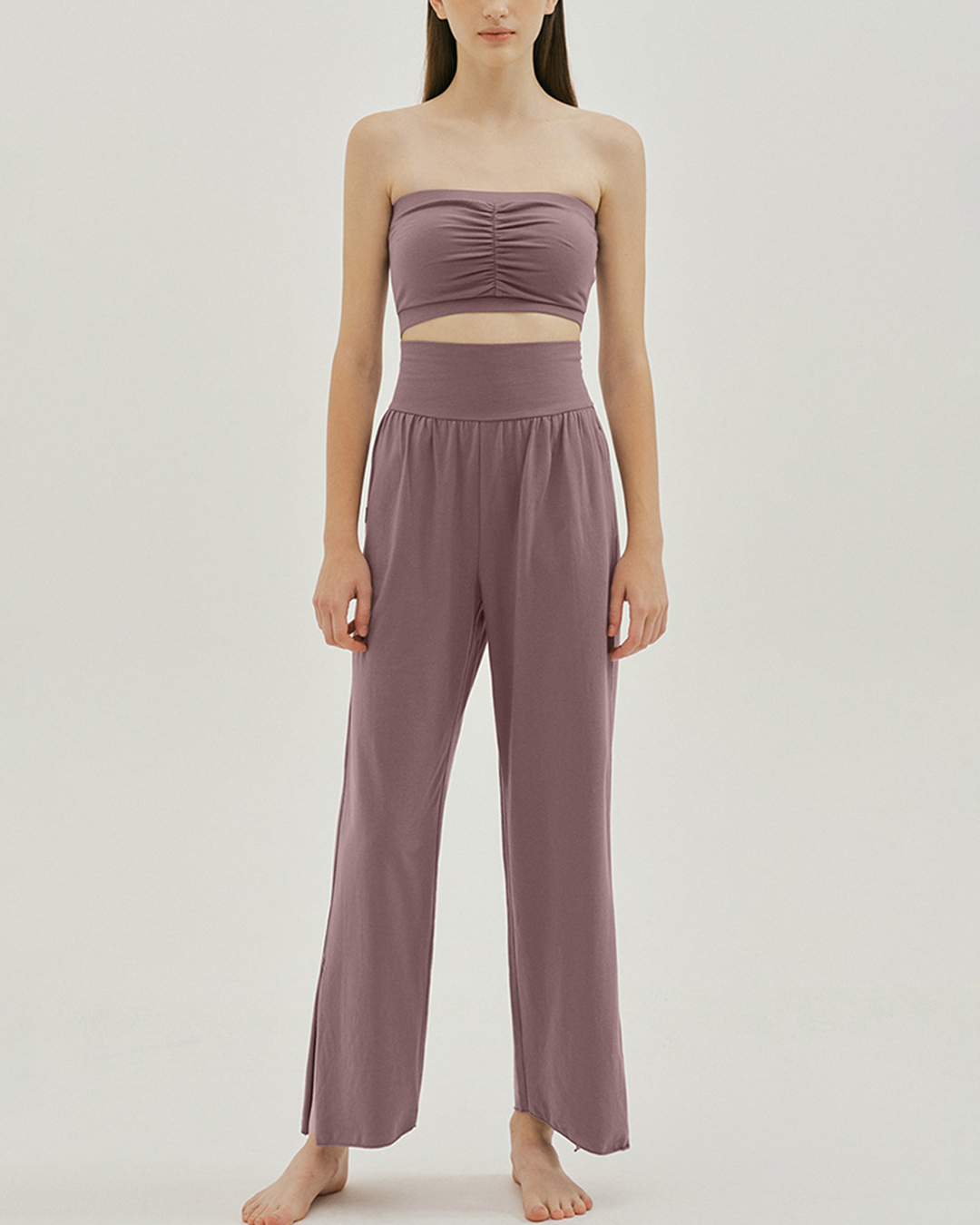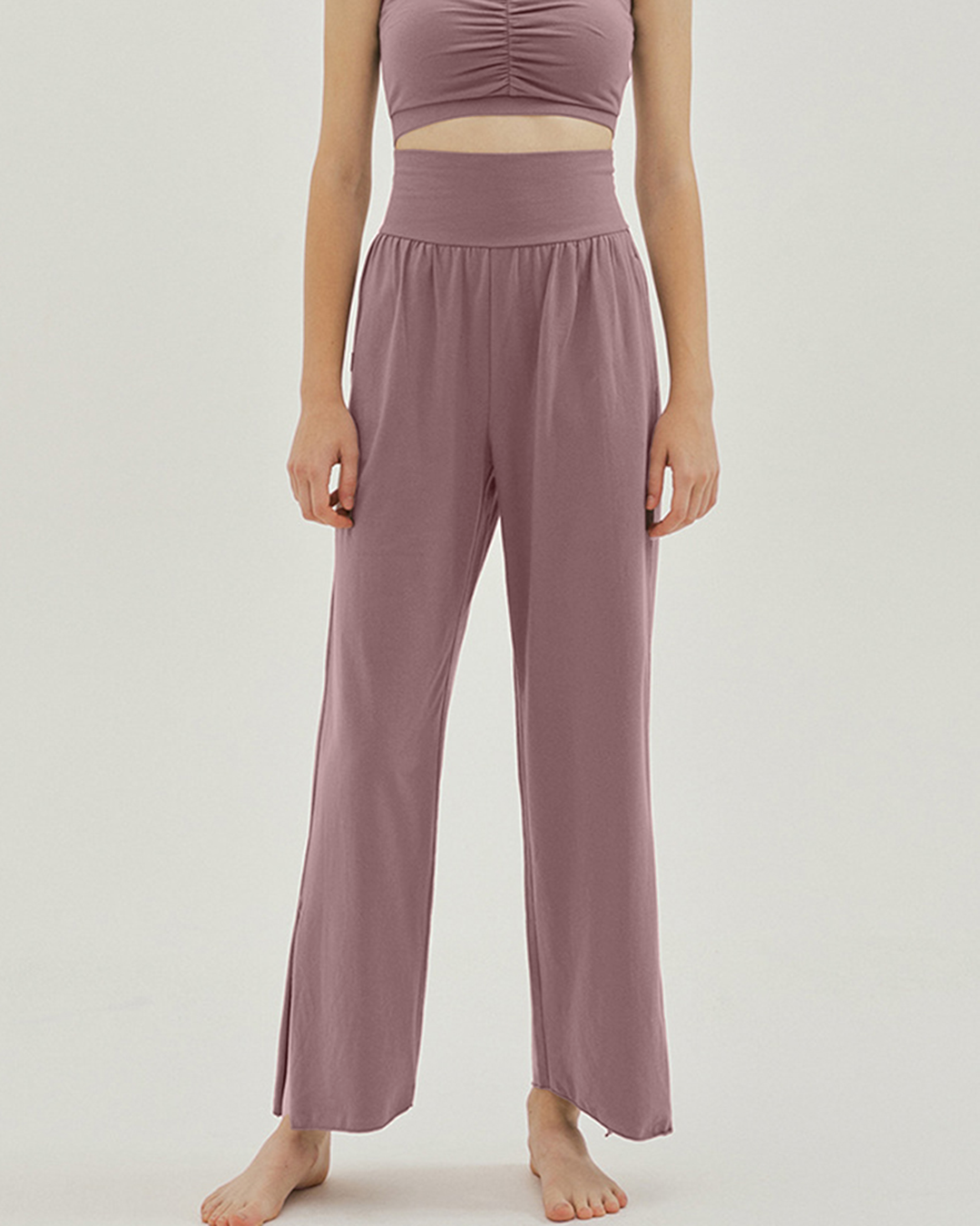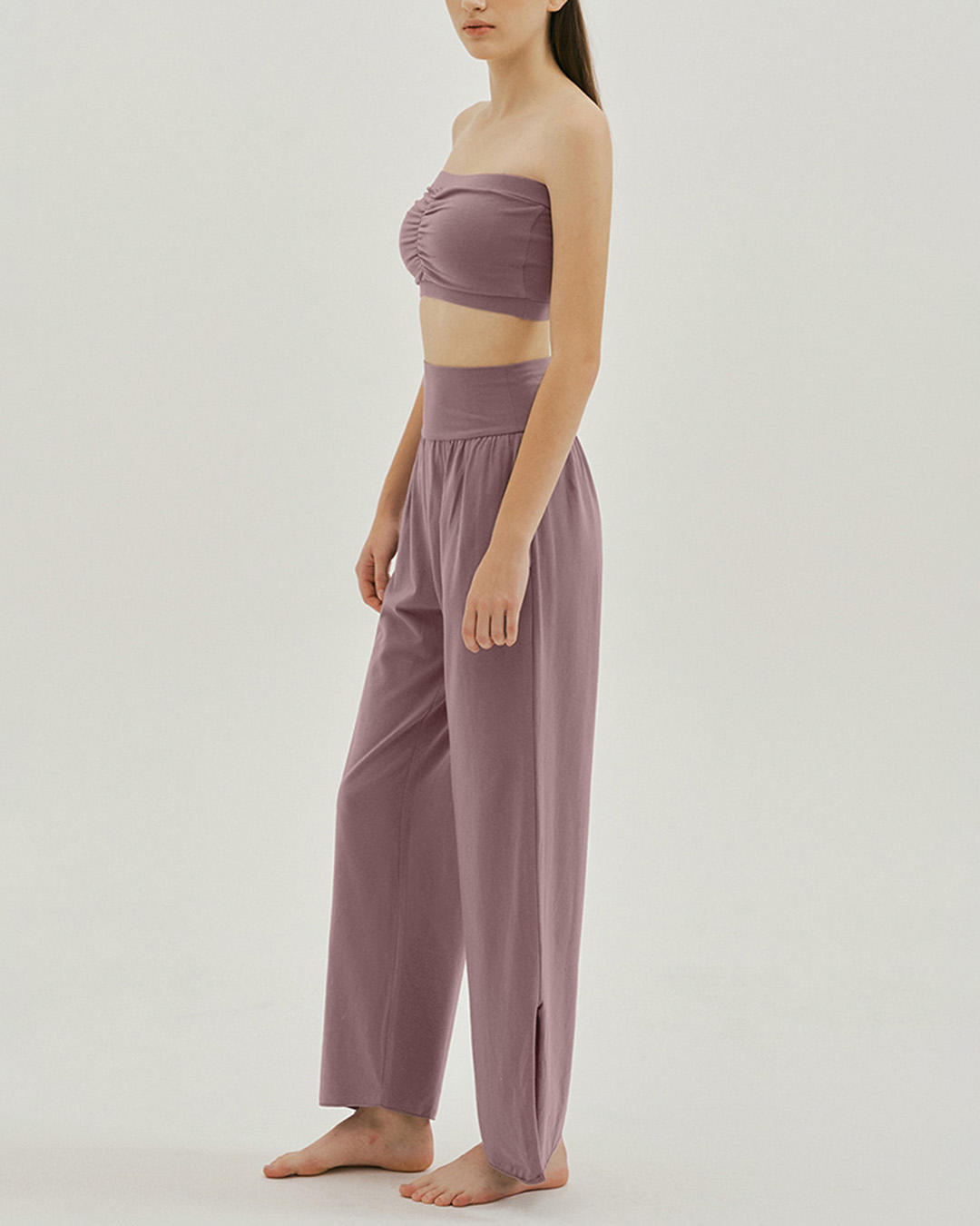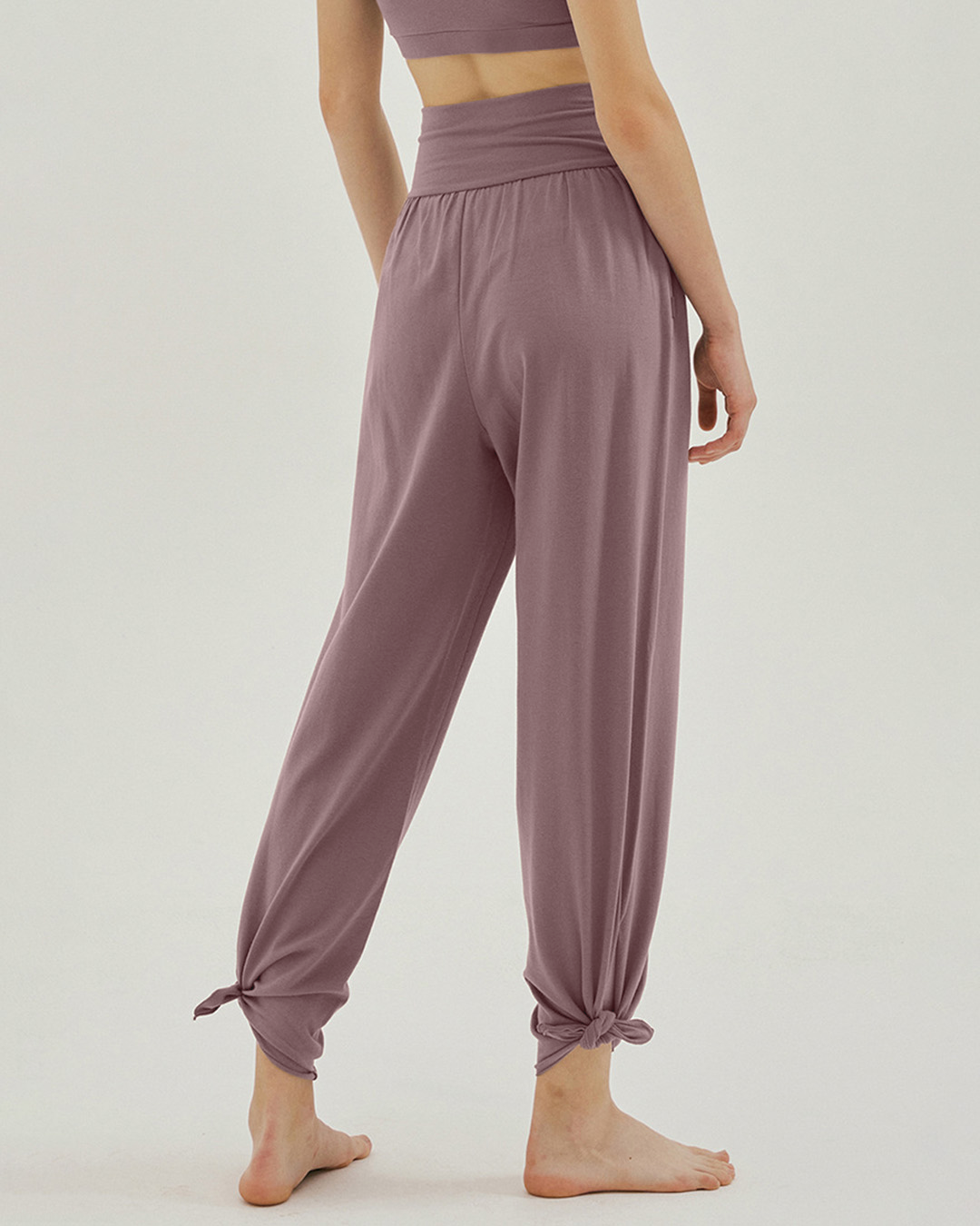 裾のスリットが印象的なヨガパンツ。ハイウエスト仕様でお腹まわりを引き締め、全体のラインも美しく整う。スリット部分を結ぶと足首がすっきり見え、軽やかな動きを演出します。滑らかな肌ざわりで着心地もやさしい一枚です。