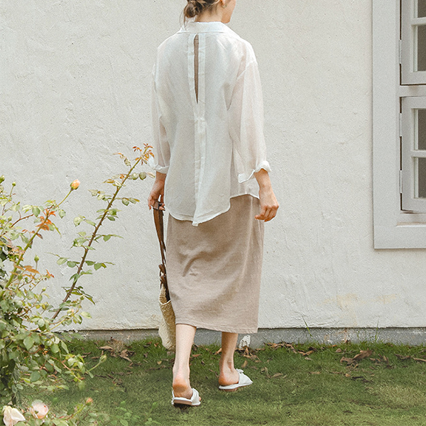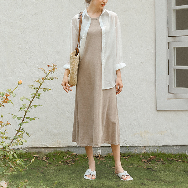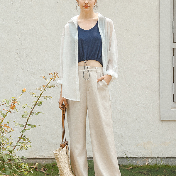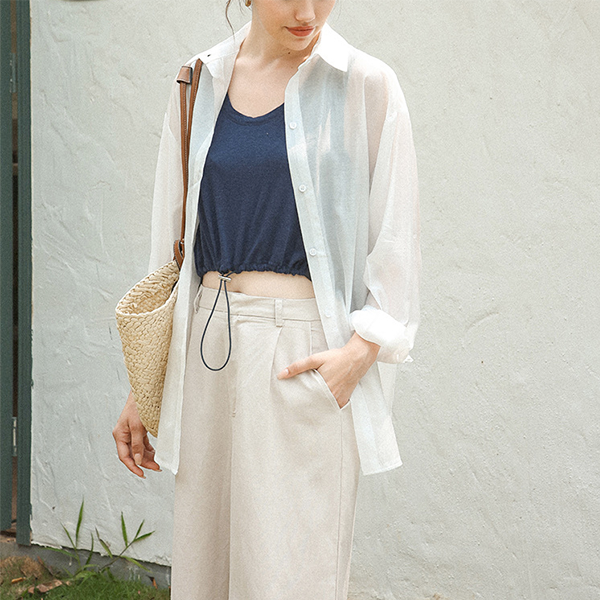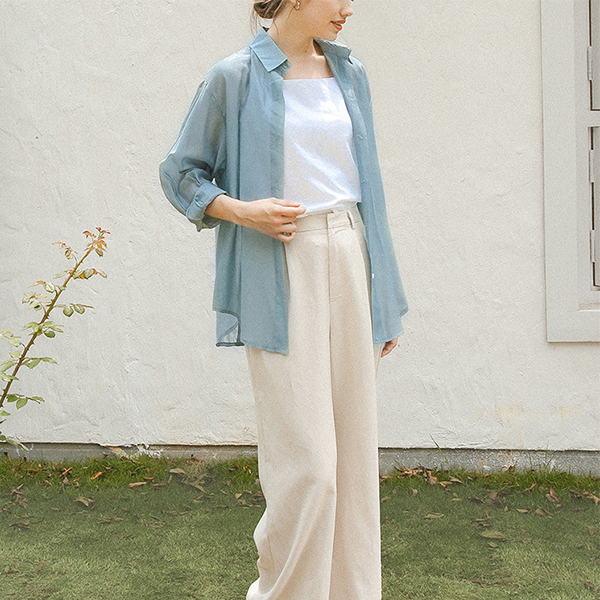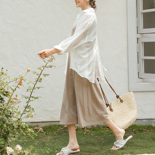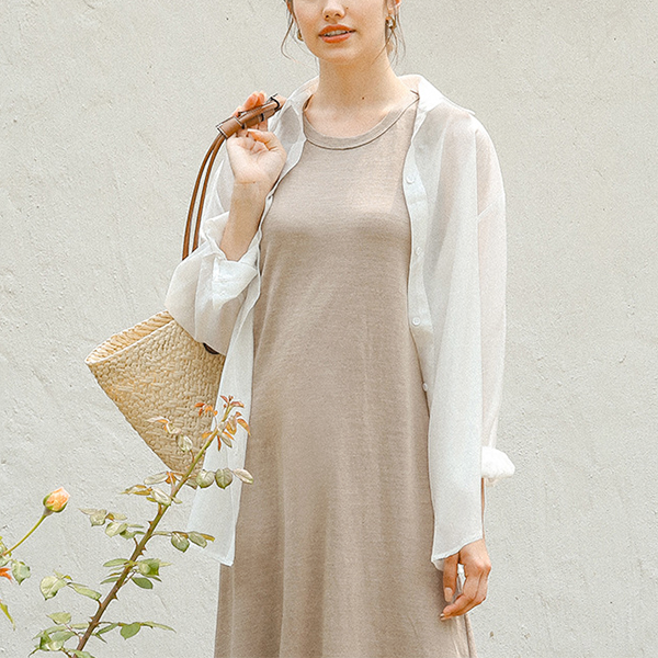 真夏の汗ばむ季節も快適になる涼しげな生地を使用したヨガチュニック。