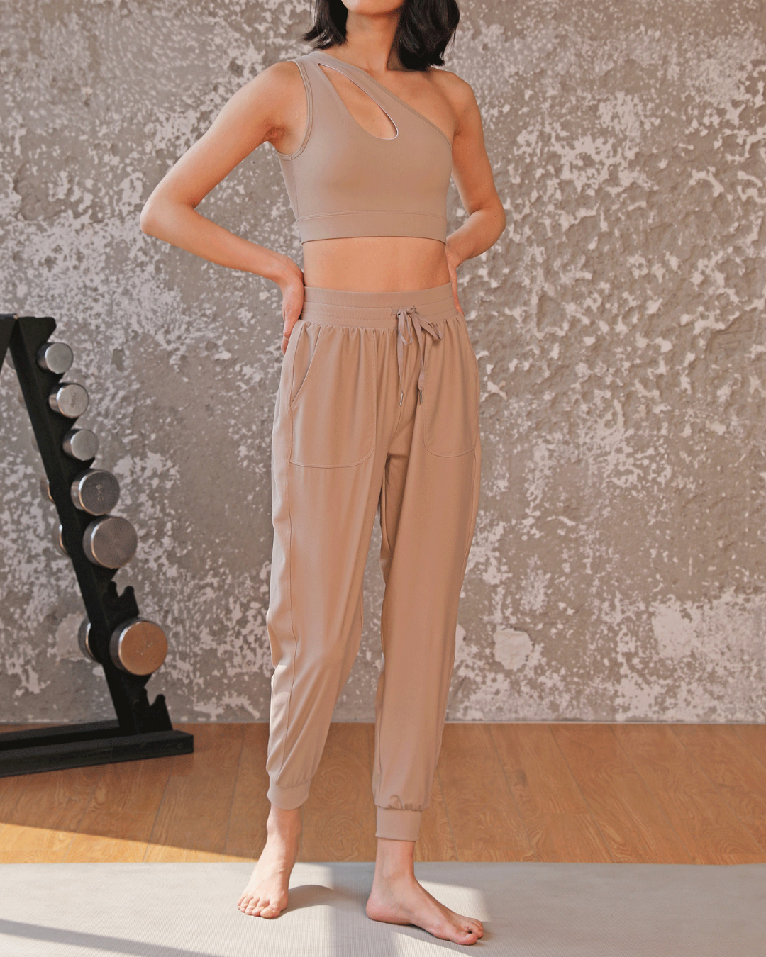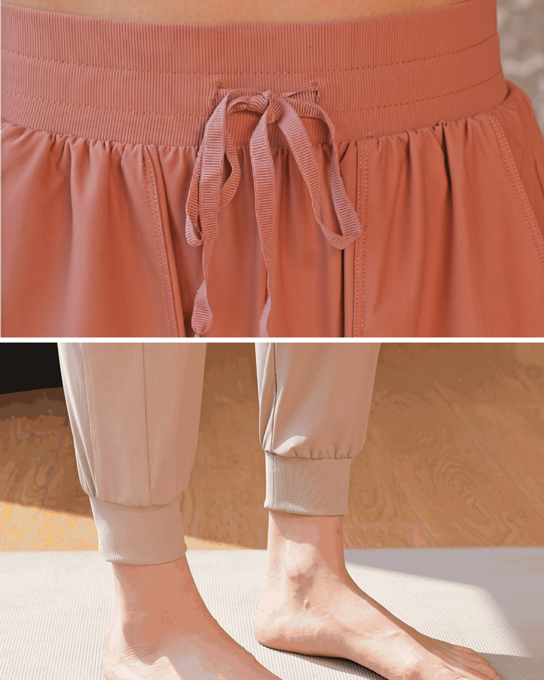 伸びのよいストレッチ素材のヨガパンツ。優れたストレッチ性で屈伸やひねりの動きもノーストレス。幅広ウエストベルトが腰まわりをしっかり支え、動作中もズレにくい仕様。吸汗速乾性に優れ、汗をかいてもさらりとした着心地が続きます。