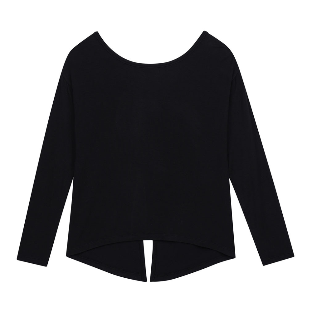 長めの後ろ身頃で、ポーズを変えながら自由に体を曲げ伸ばししたり、動かしたりできます。