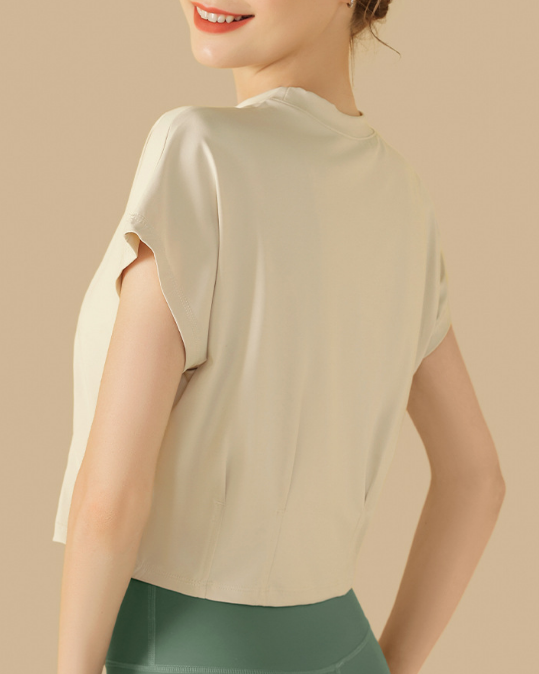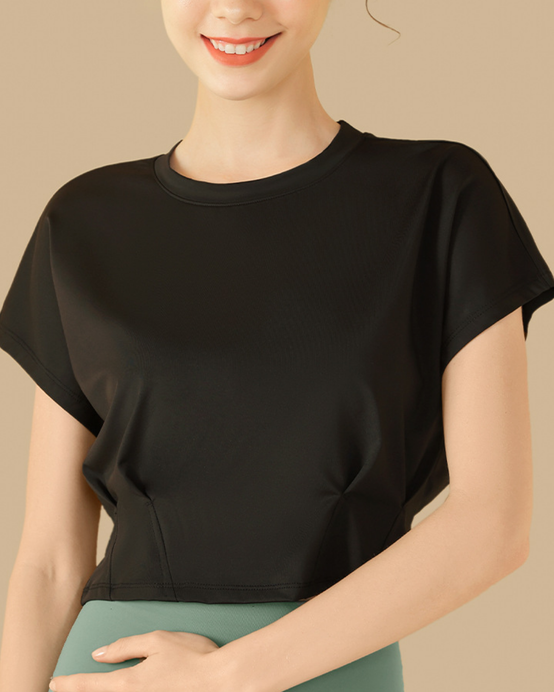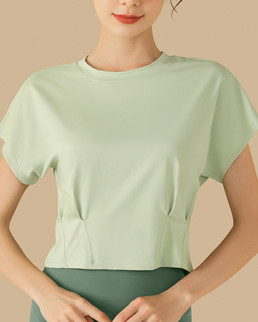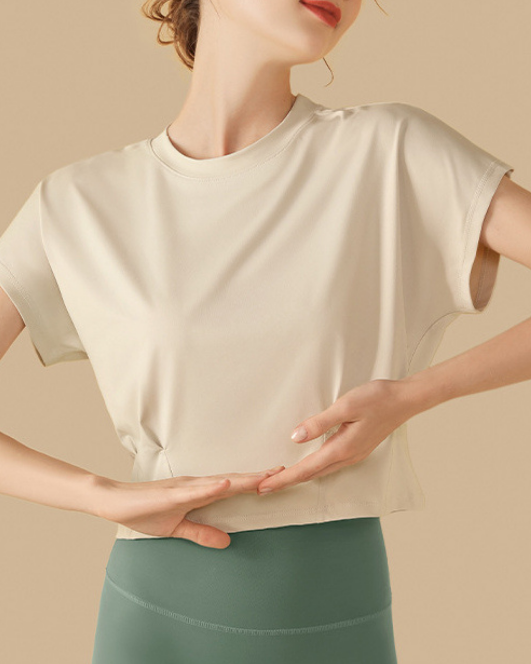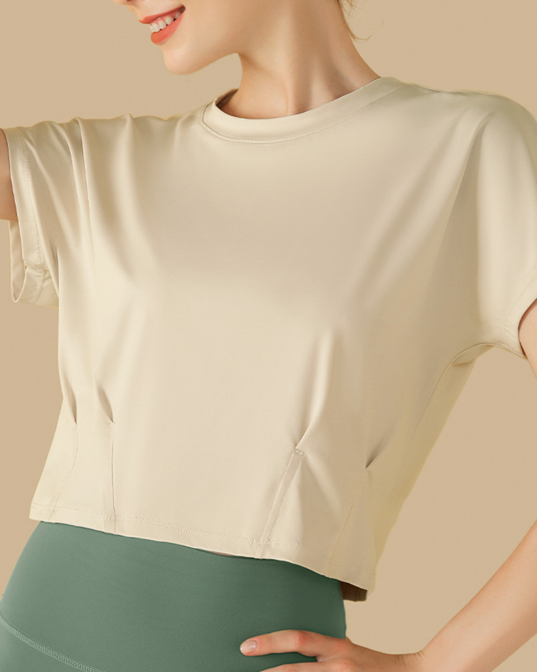 ウエストにタックを入れたクロップド丈トップス。程よく身体に沿うシルエットで、自然な立体感が生まれます。洗練されたフォルムが、スタイル全体をバランスよく引き立てる一枚です。