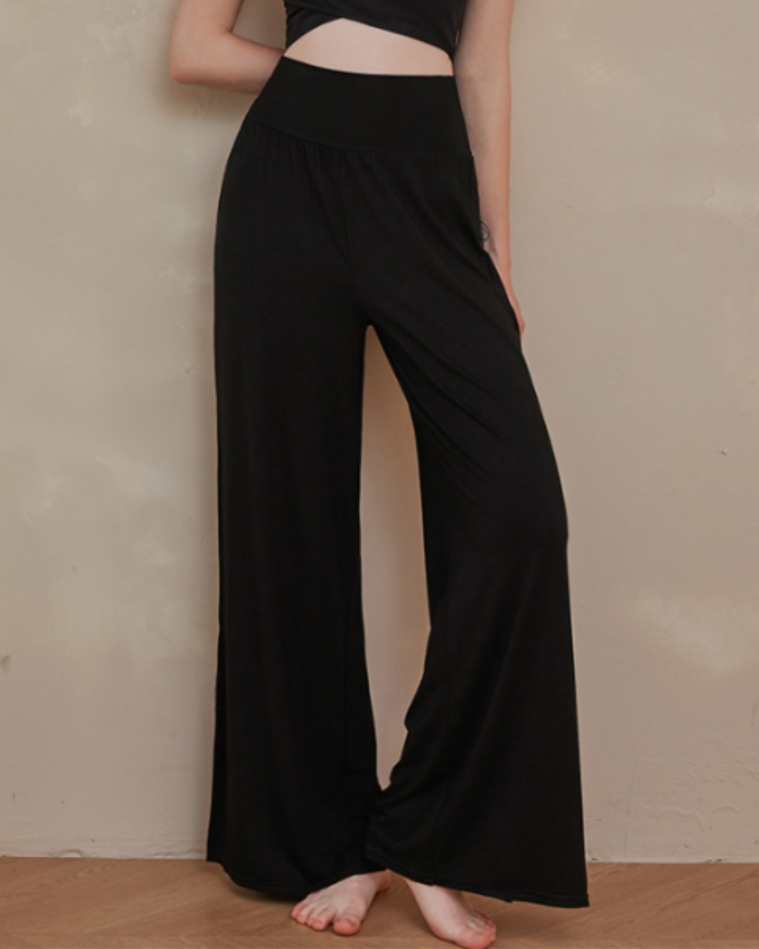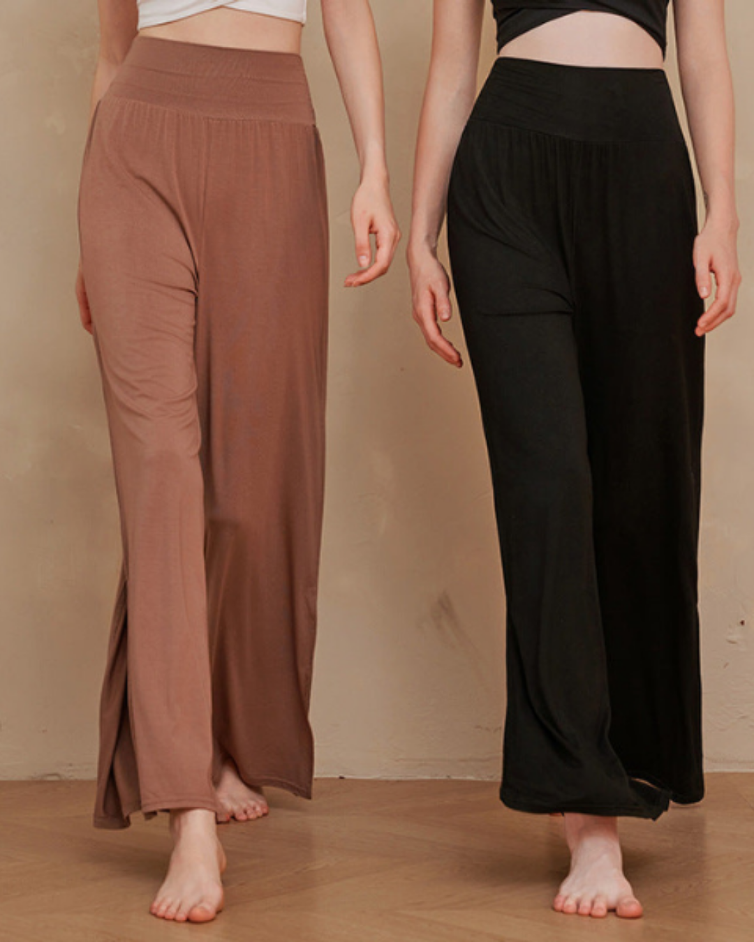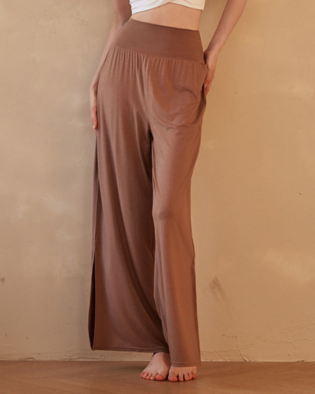 自由な動きを叶えてくれるワイドパンツ。足の動きを邪魔しない余裕のあるデザインと伸縮性のある素材で快適な履き心地。裾のスリットで足さばきも軽やか。落ち感のある生地が脚のラインを整え、ワークを妨げません。