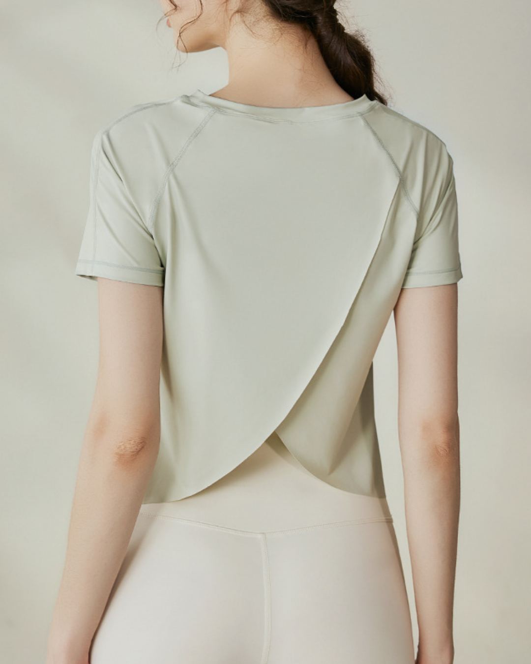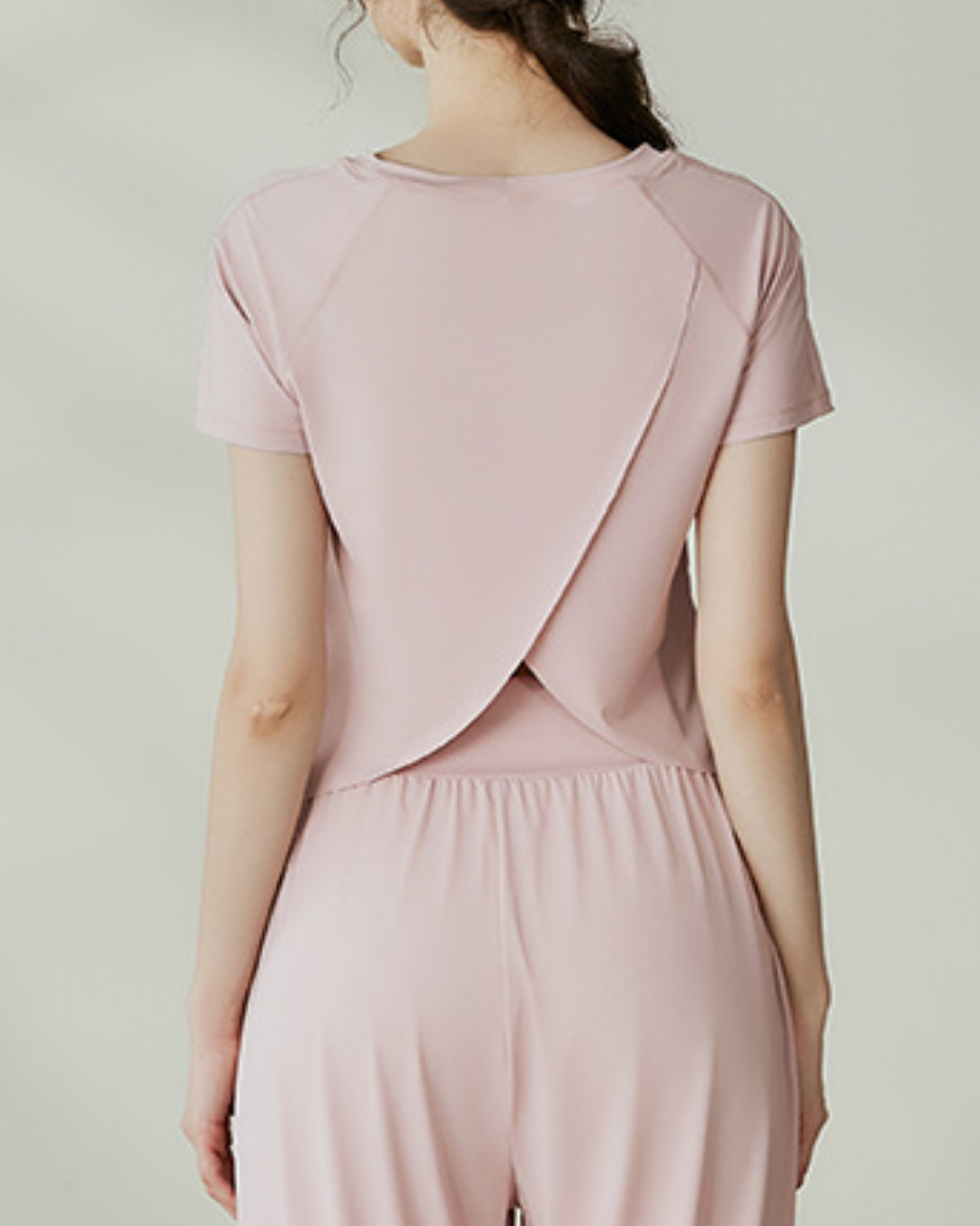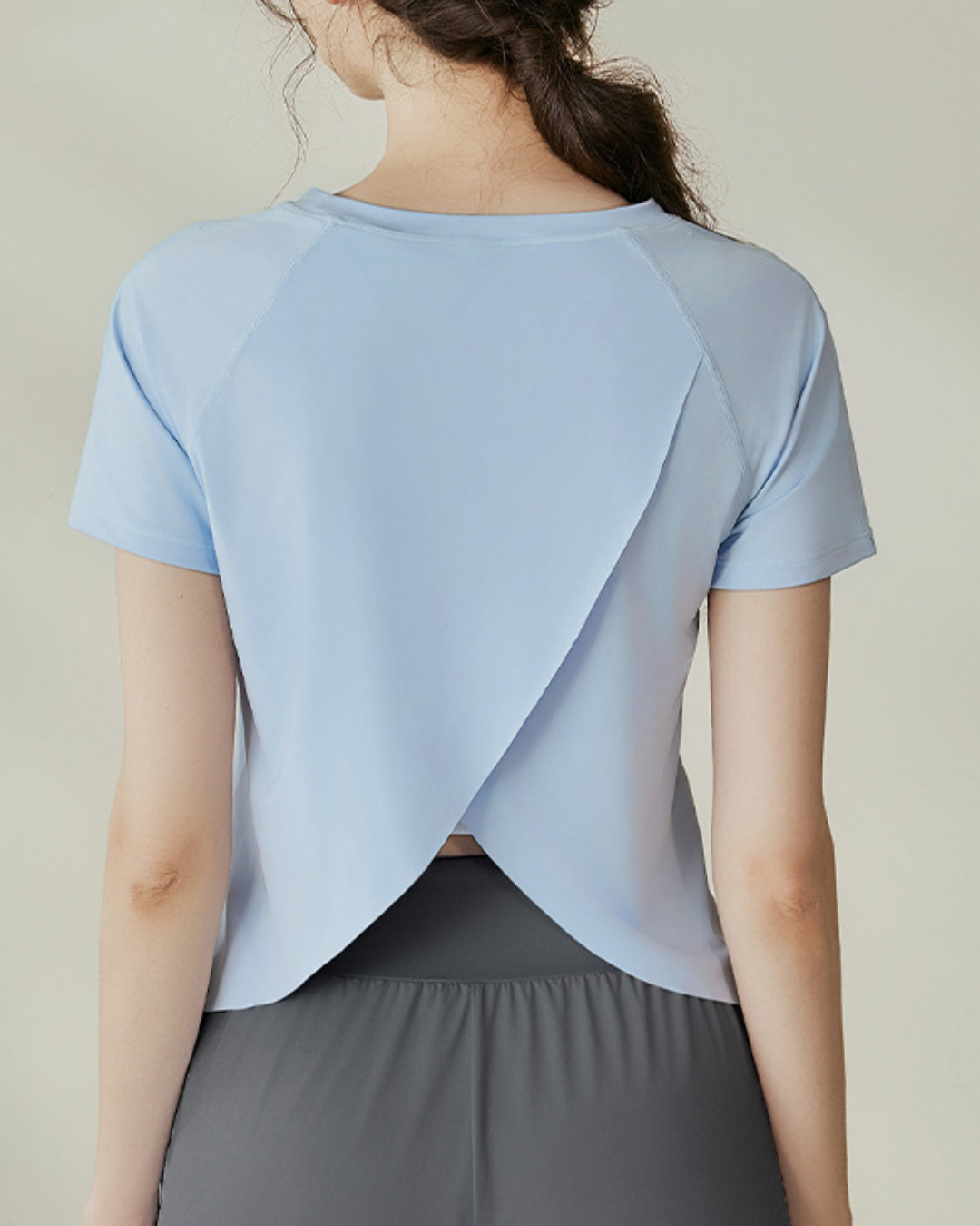 UPF+50ペールカラーラップバックヨガカットソー 3855