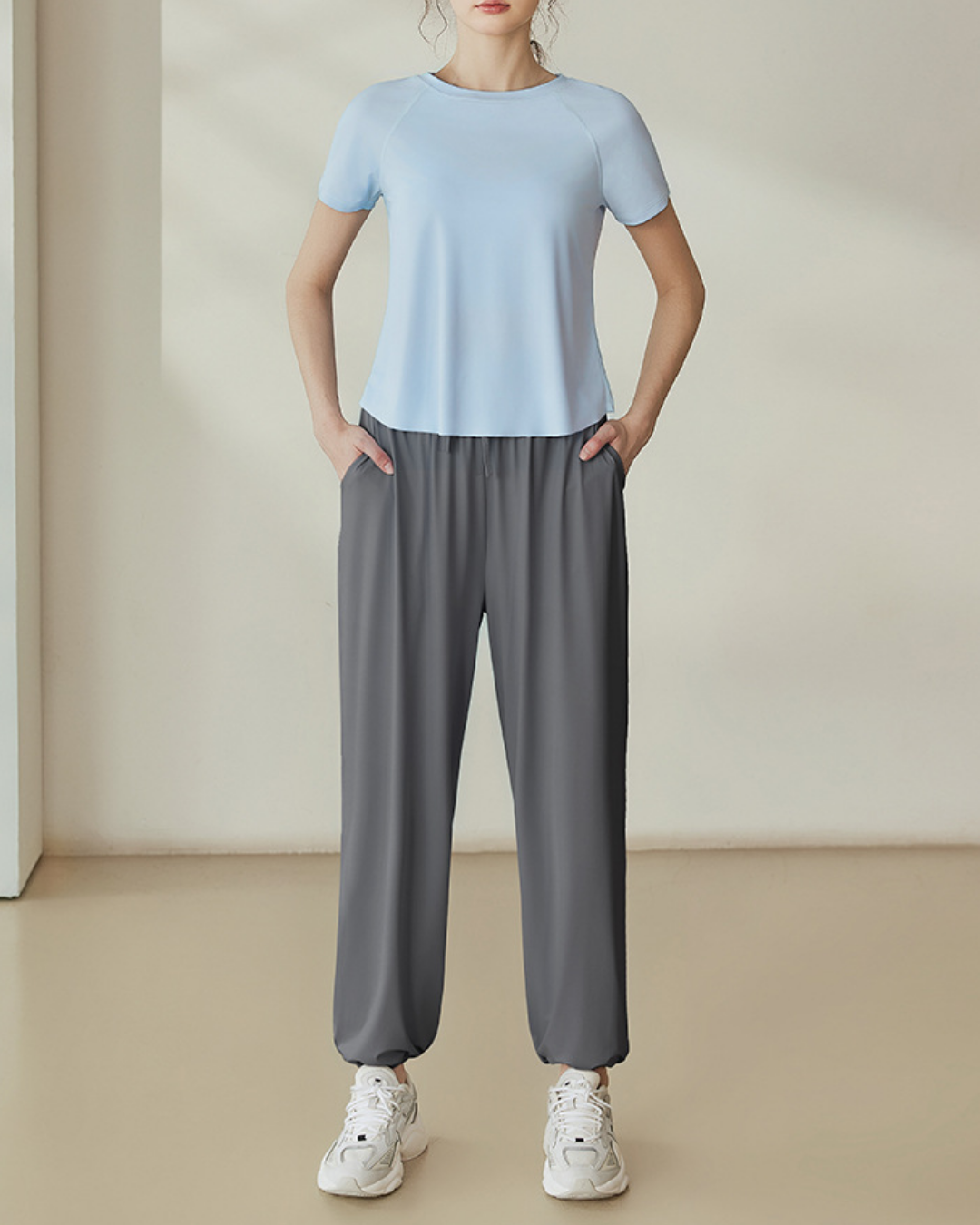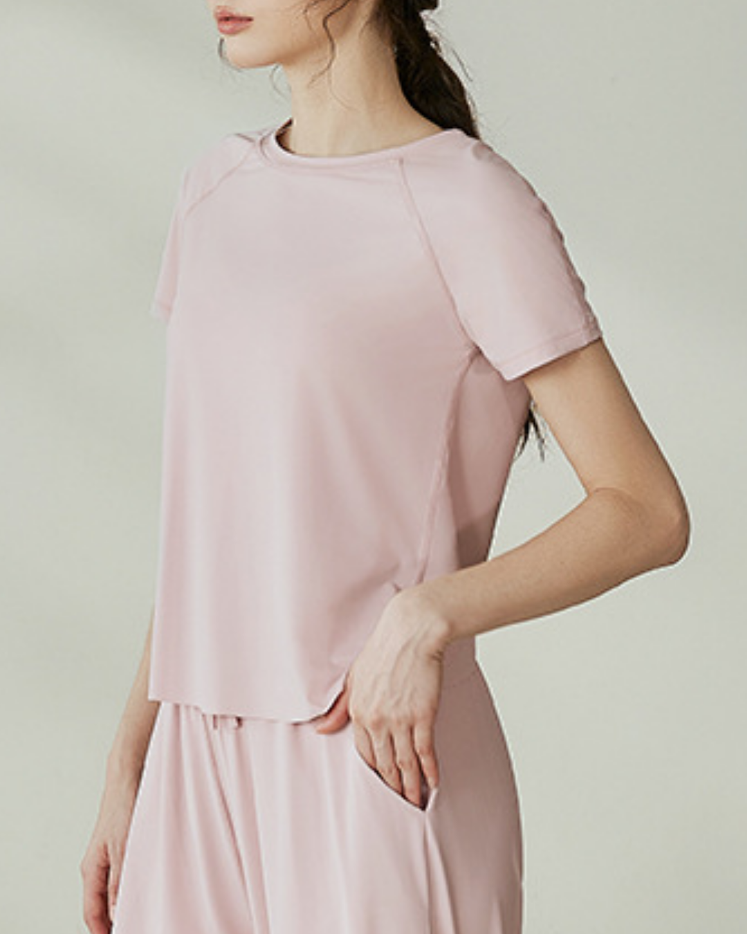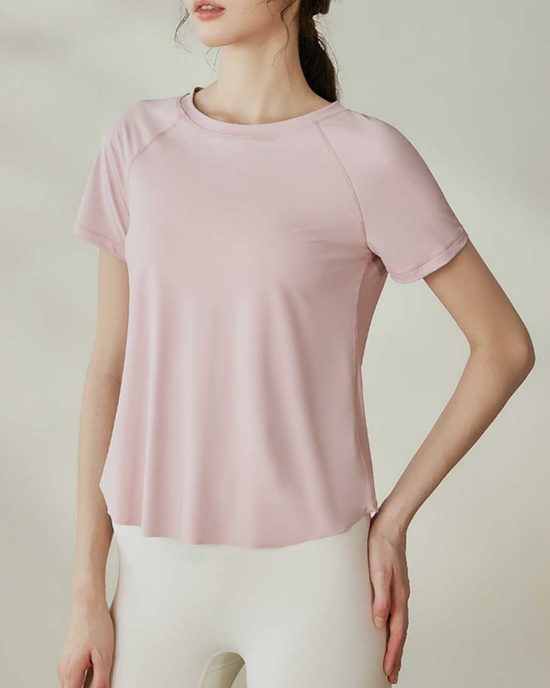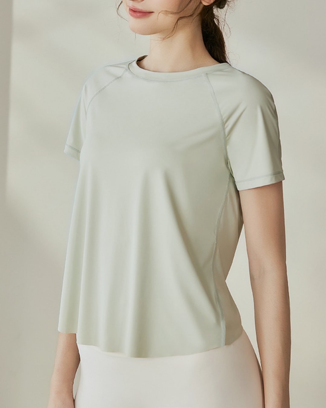 UPF+50ペールカラーラップバックヨガカットソー 3855